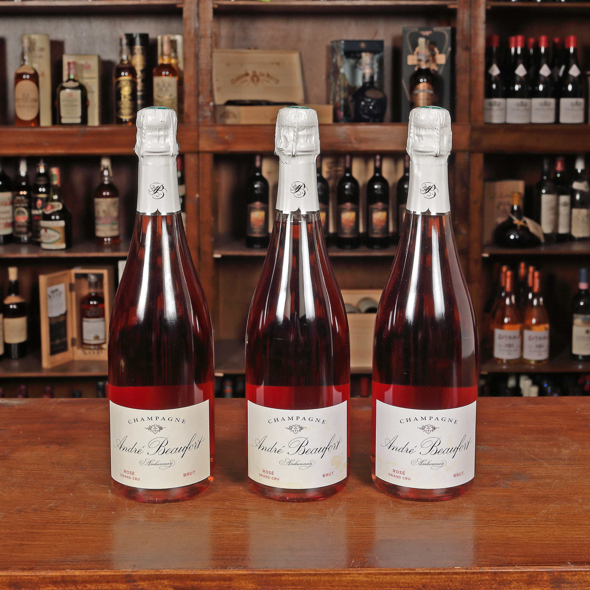 12. Lot de champagne Andre Beaufort, Grand Cru Rosé, 3st x 0,75l