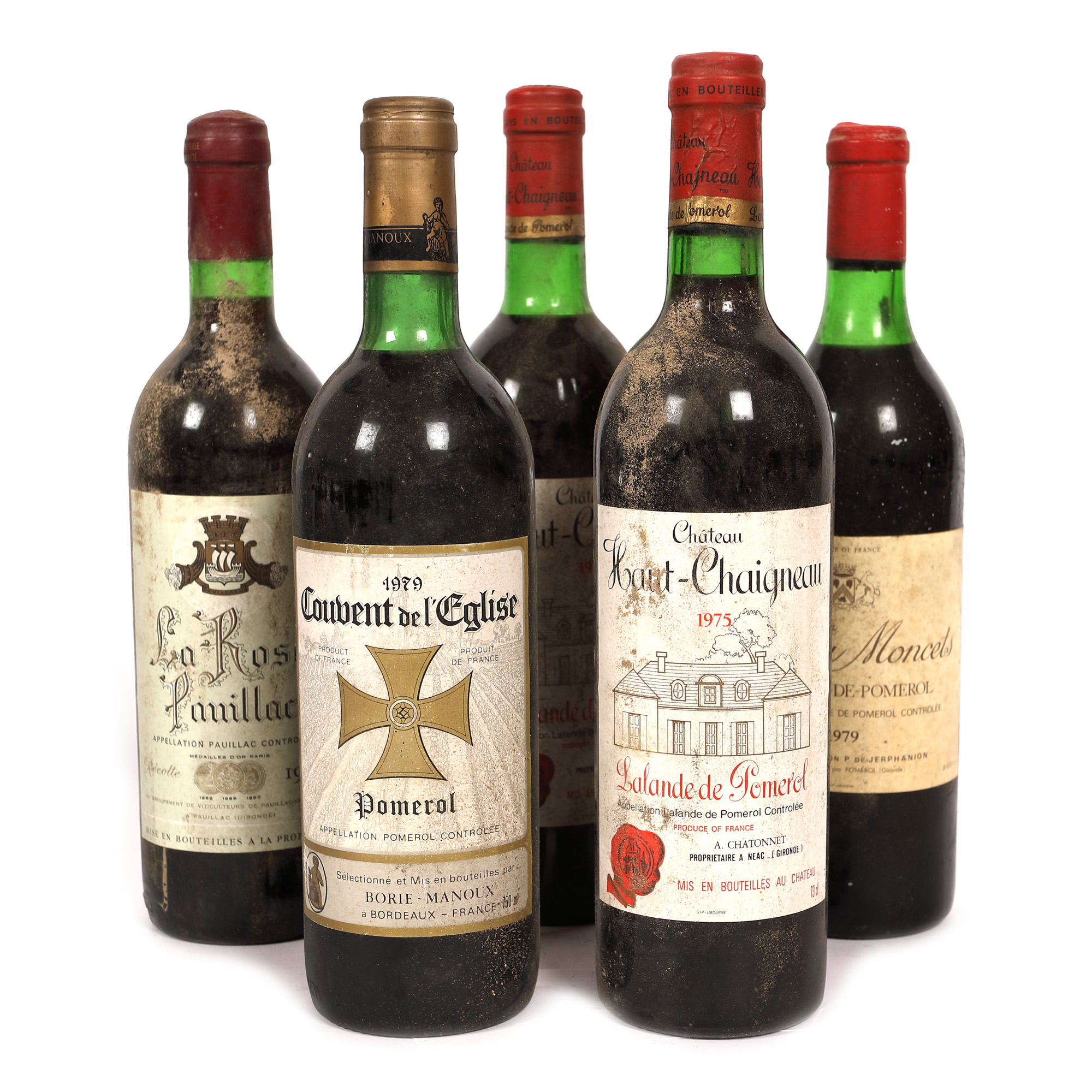 15. Lot de vinuri roșii din regiunea Pomerol și Pauillac, 1975-1979, 5st x 0,75l