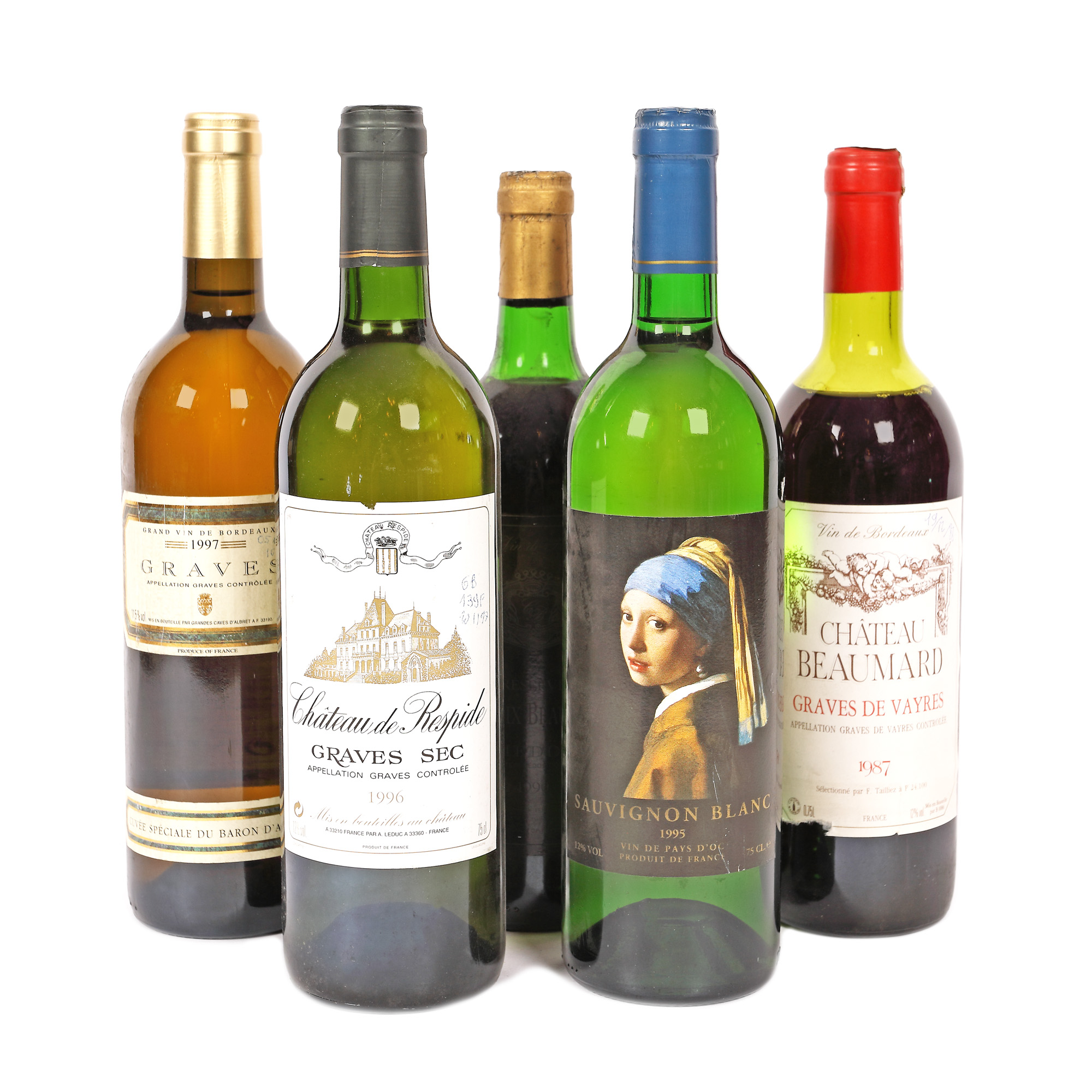 23. Lot format din diverse vinuri franțuzești, 1987-1997, 5st x 0,75l