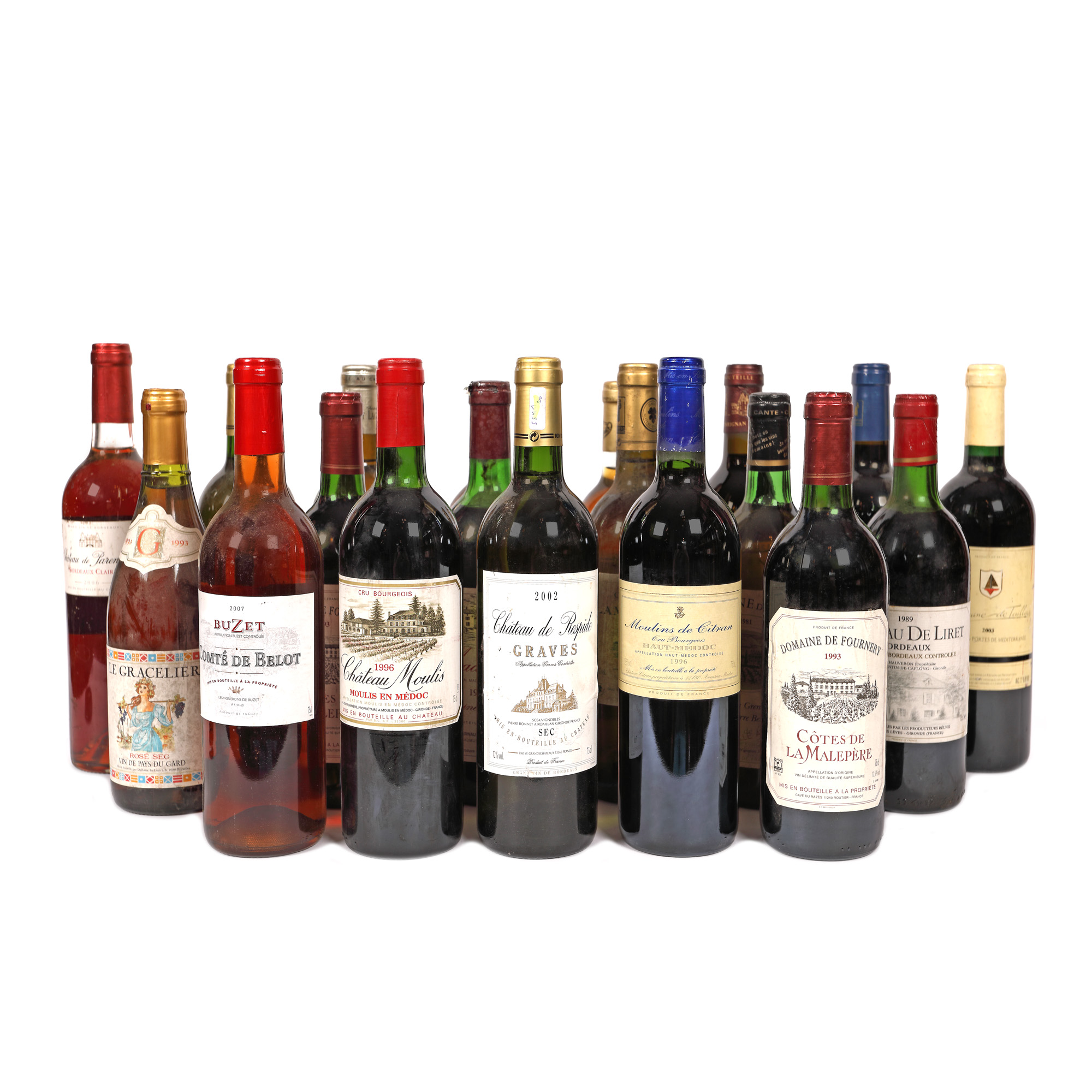 24. Lot format din diverse vinuri franțuzești, 1987-2014, 19st x 0,75l