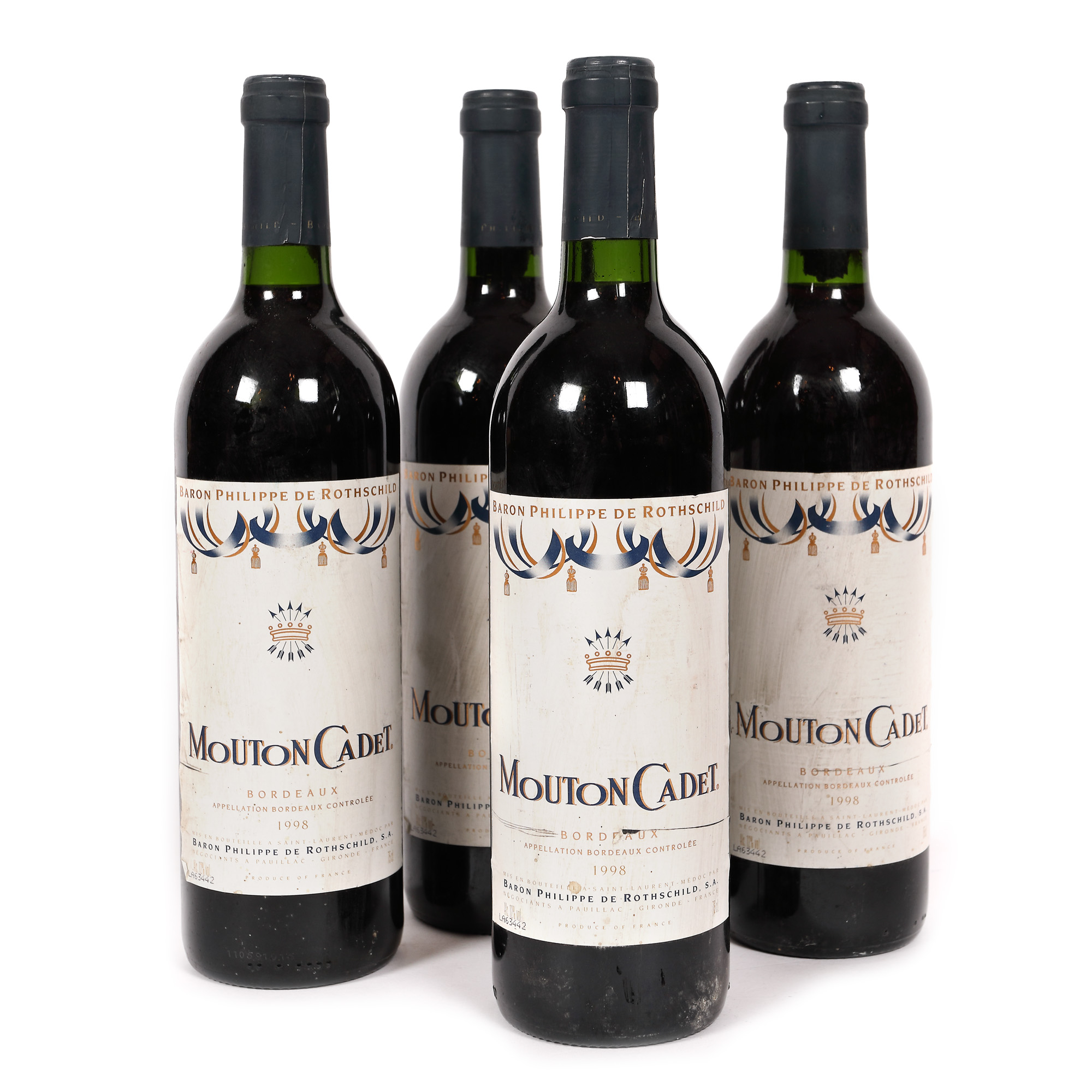 12. Mouton Cadet, Baron Philippe de Rothschild, Bordeaux, 1998, 4st x 0,75l