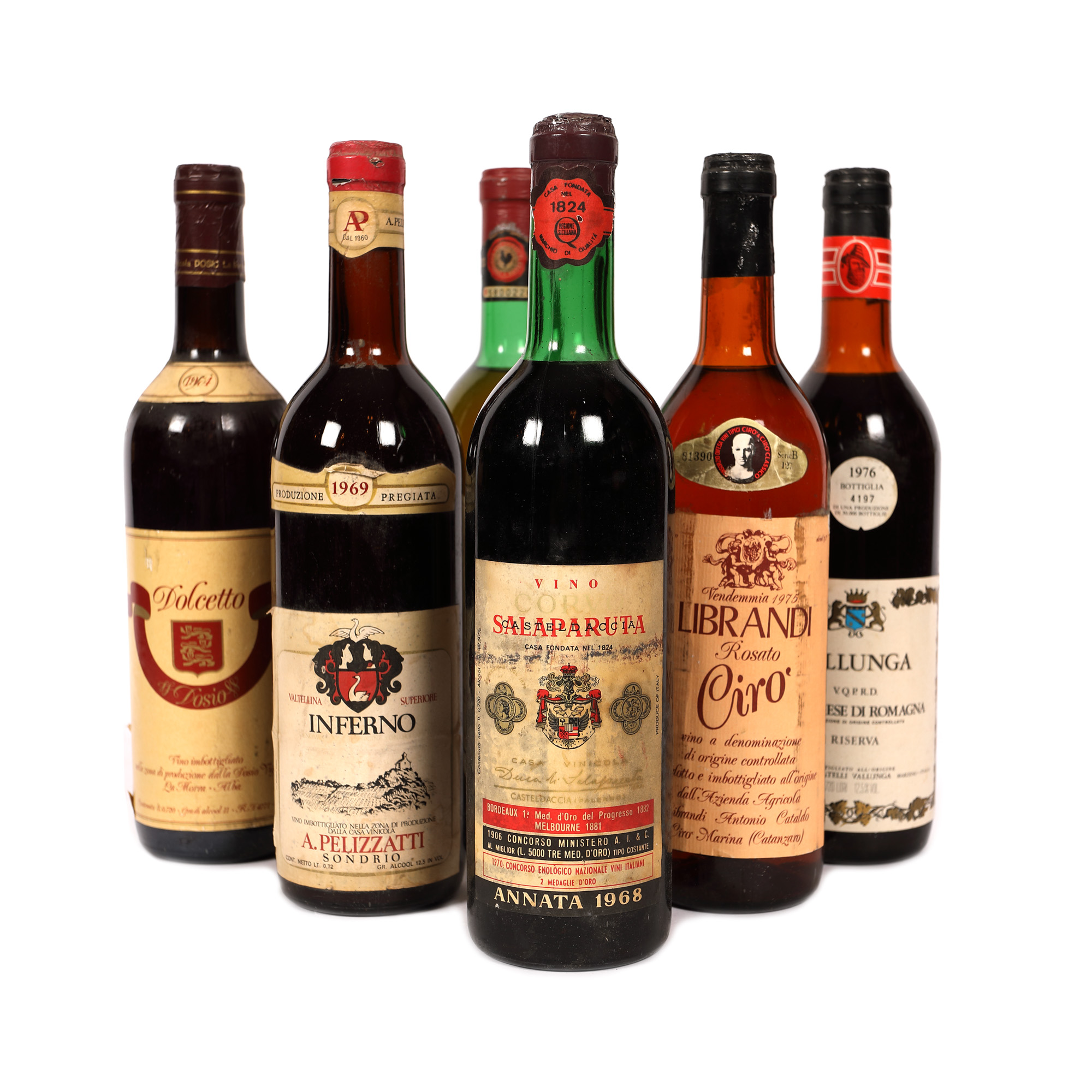 21. Lot format din diverse vinuri italienești, 1968/1969/1970/1974/1975/1976, 6st x 0,75l