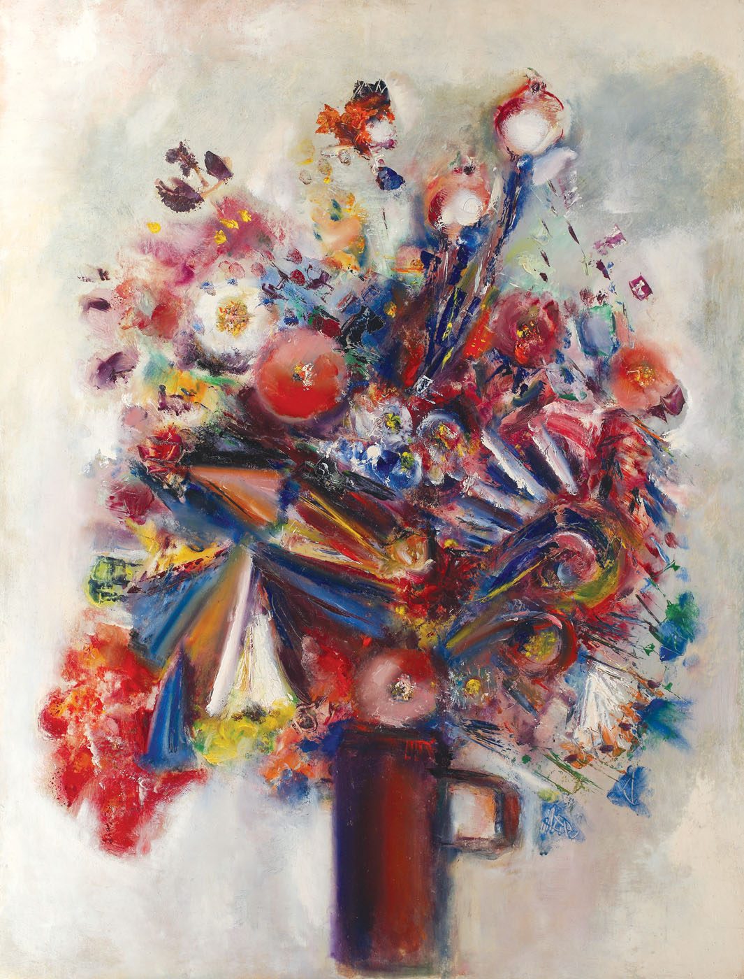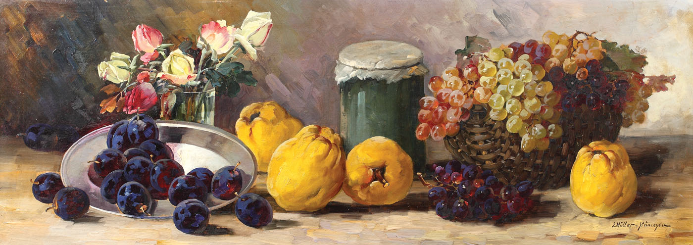 36. Natură statică cu fructe, trandafiri şi borcan cu dulceaţă