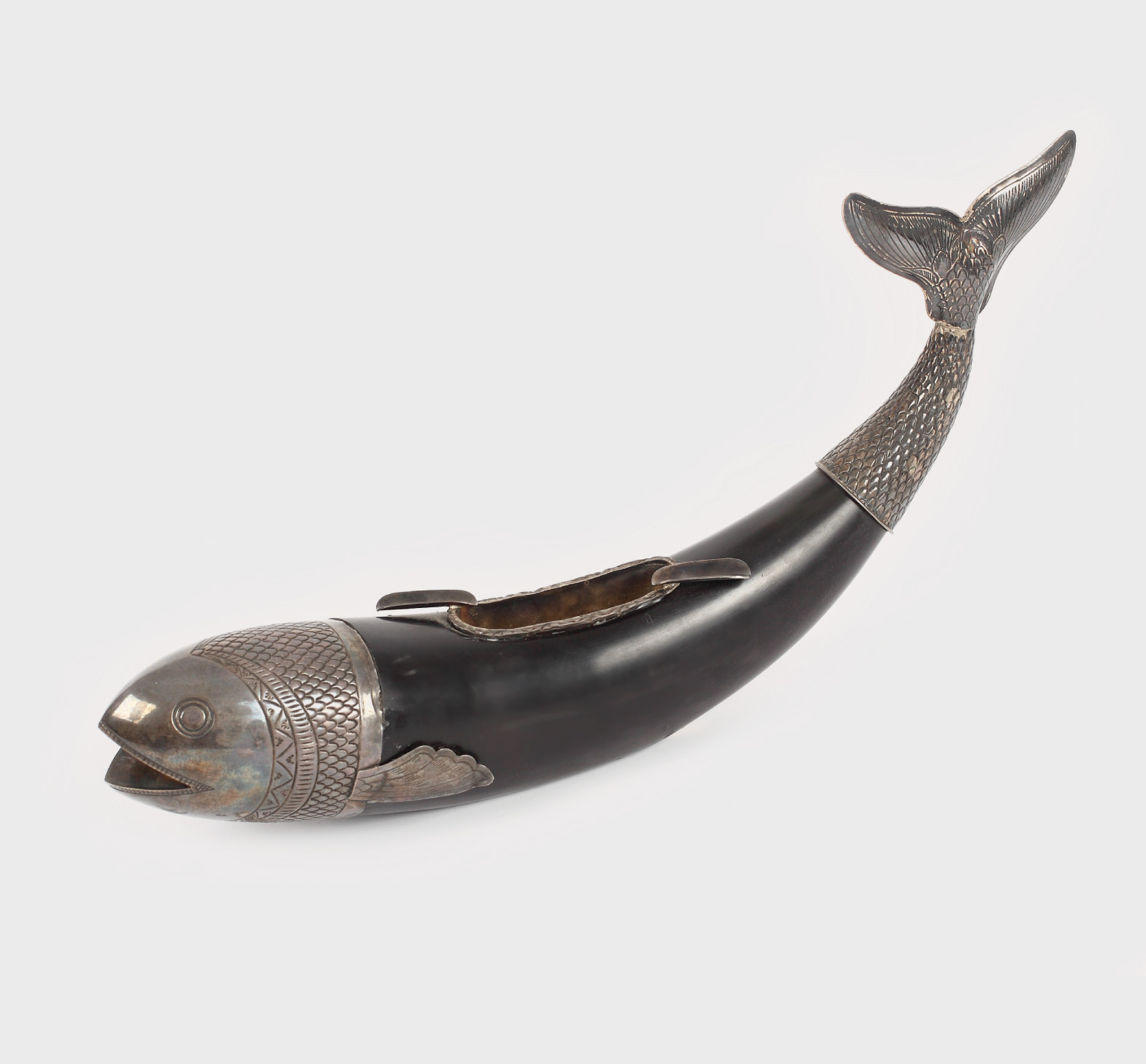 335. Scrumieră din os negru și argint, ce a aparținut soților Ceaușescu, însoțită de certificat RAPPS [cca. 1982]
