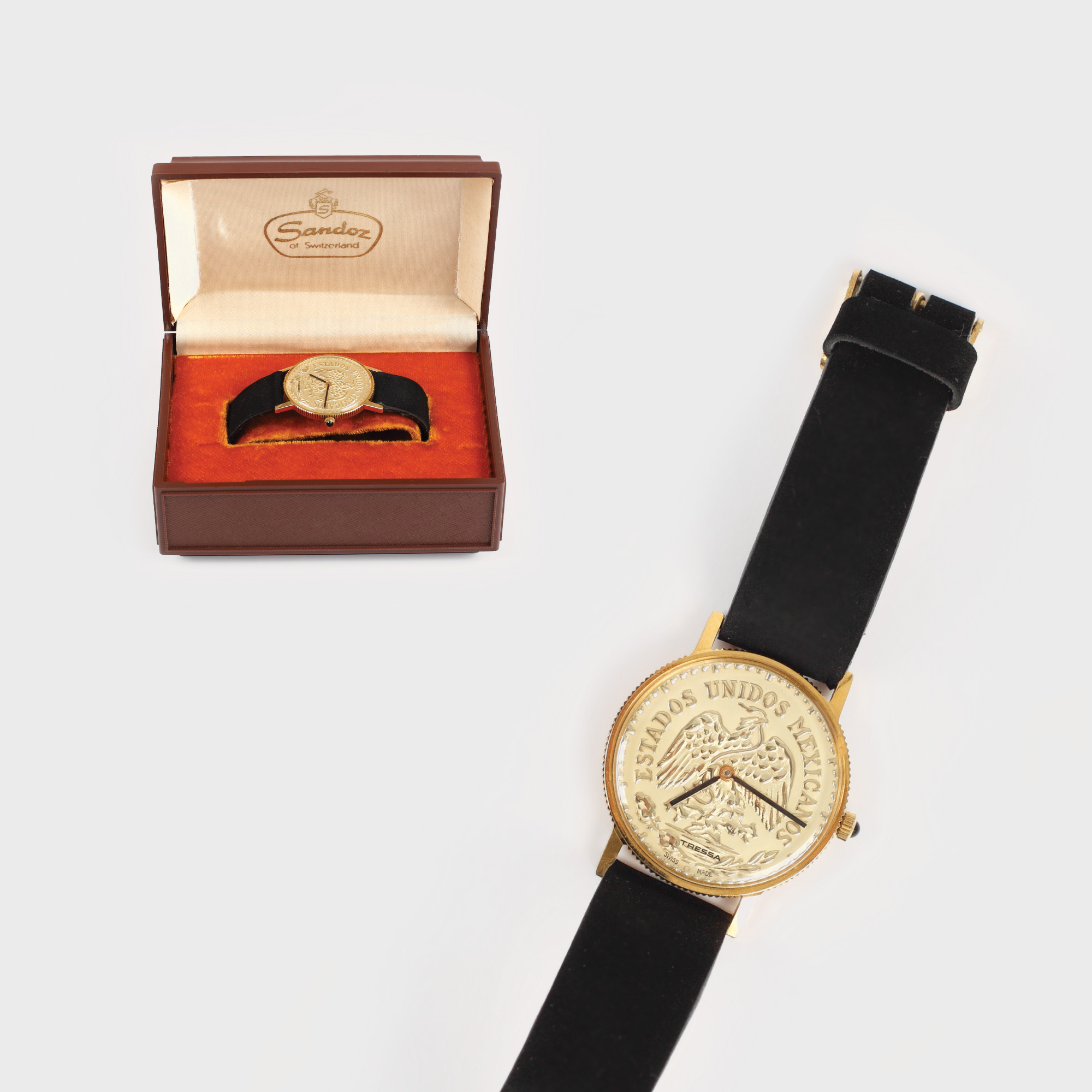 337. Ceas Tressa, de mână, comandă specială, placat cu aur, oferit cadou lui Nicolae Ceaușescu de către Ministrul de Interne mexican Mario Moya Palencia, însoțit de certificat RAPPS