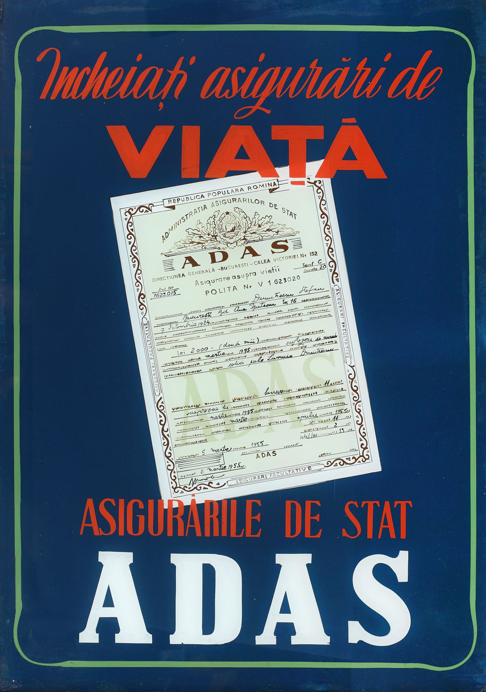 29. Afiș publicitar, "Încheiați asigurări de viață ADAS", 1955
