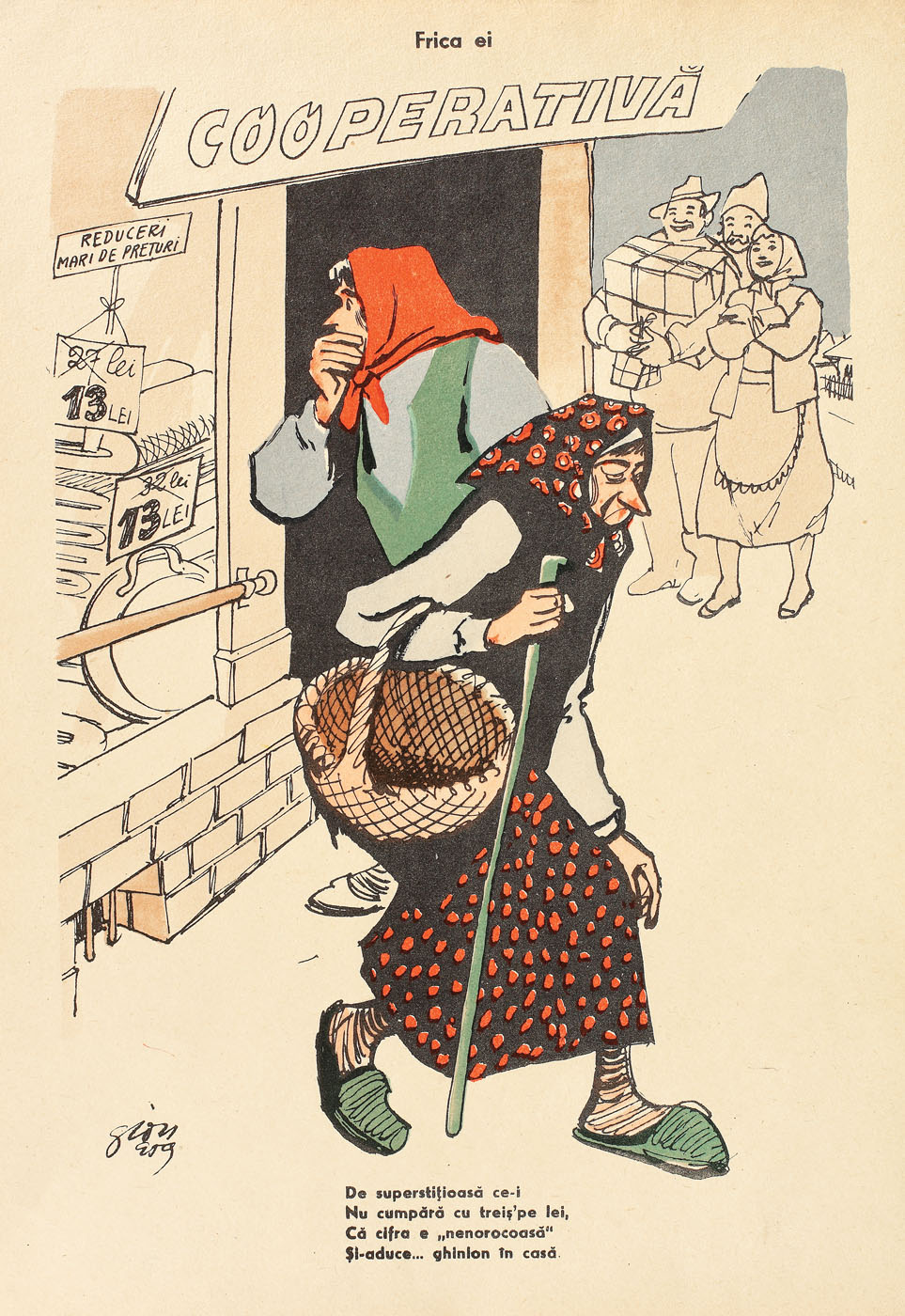 15. Lot format din două ilustrații de Mihail Gion, ilustrând scene din viața satului, din anii 1953 și 1959