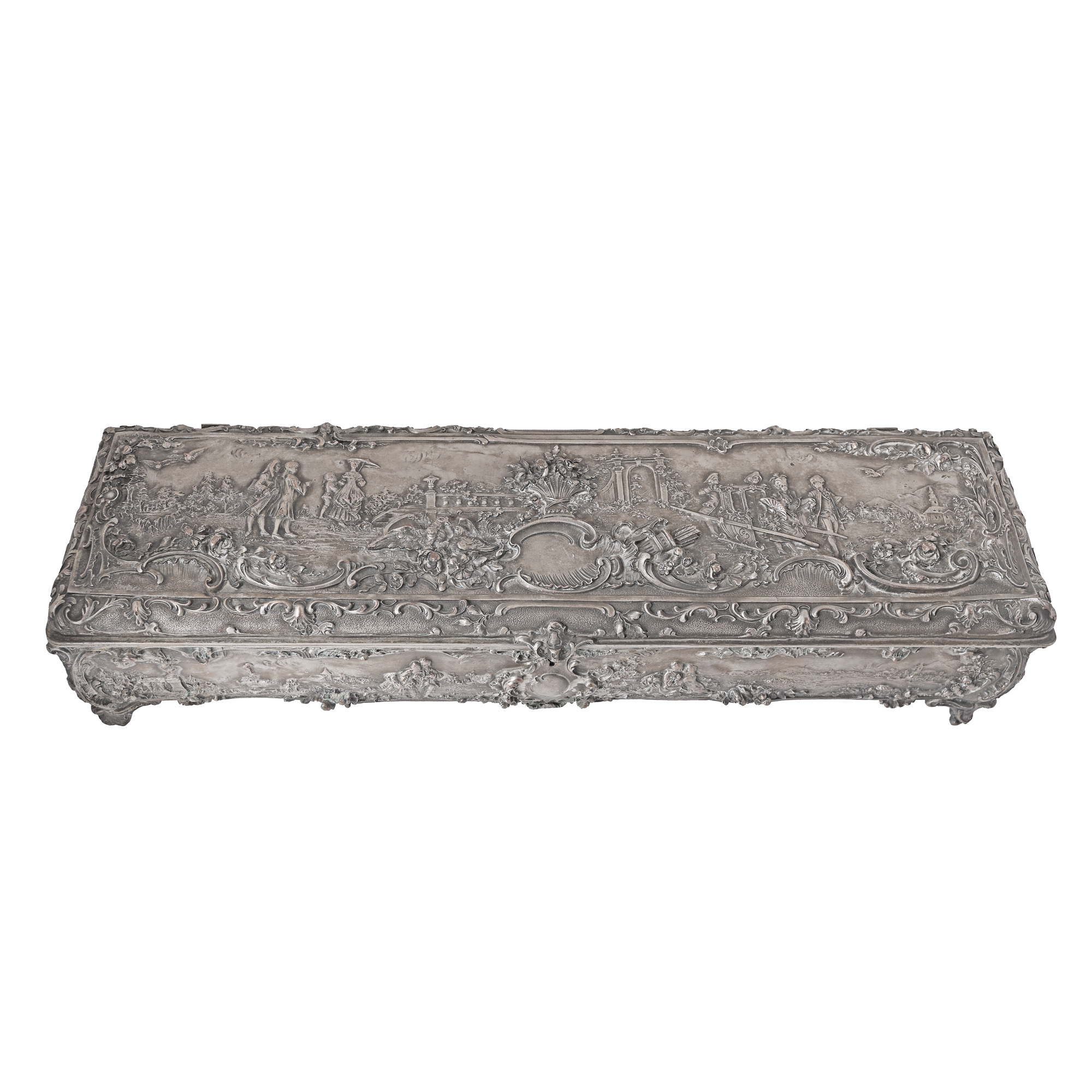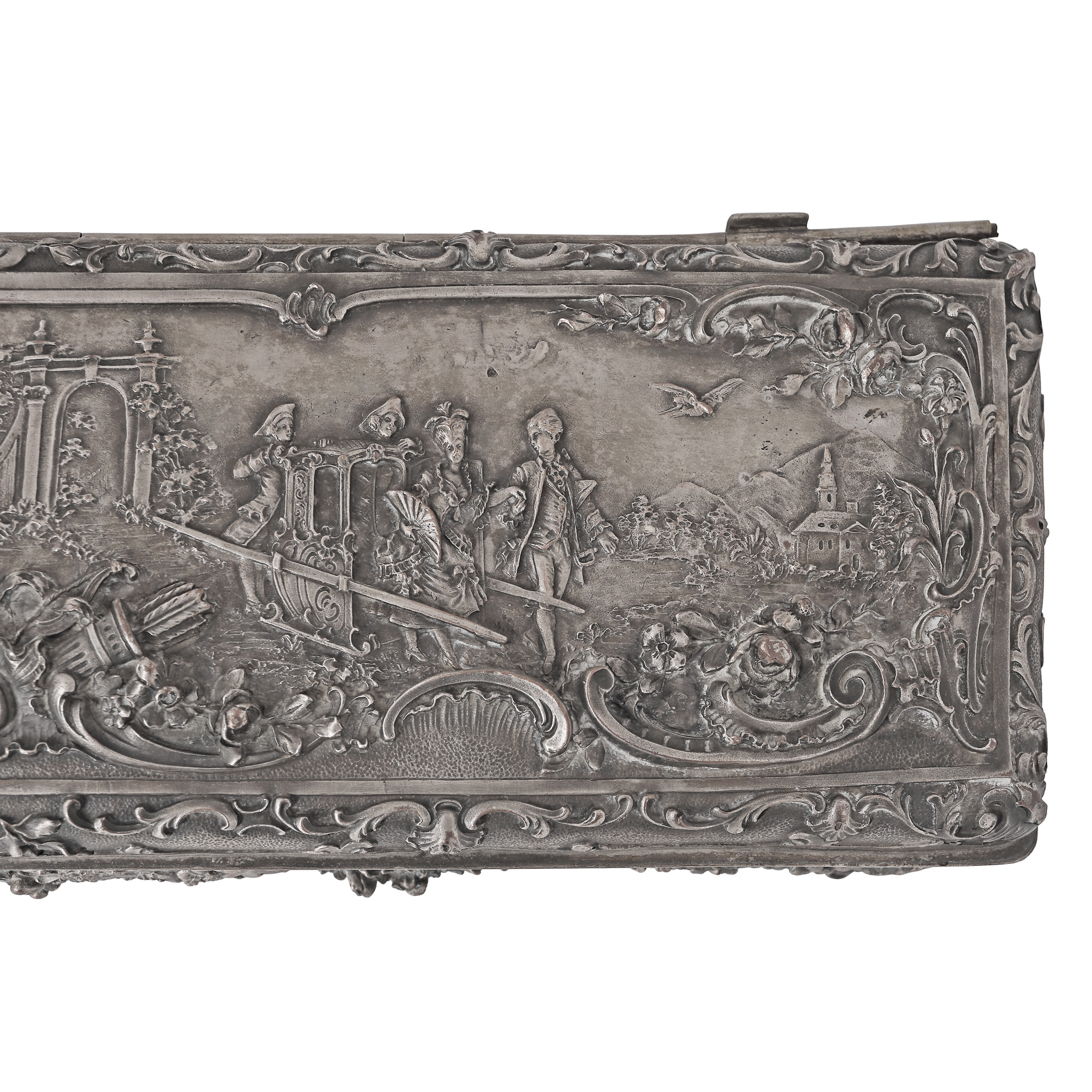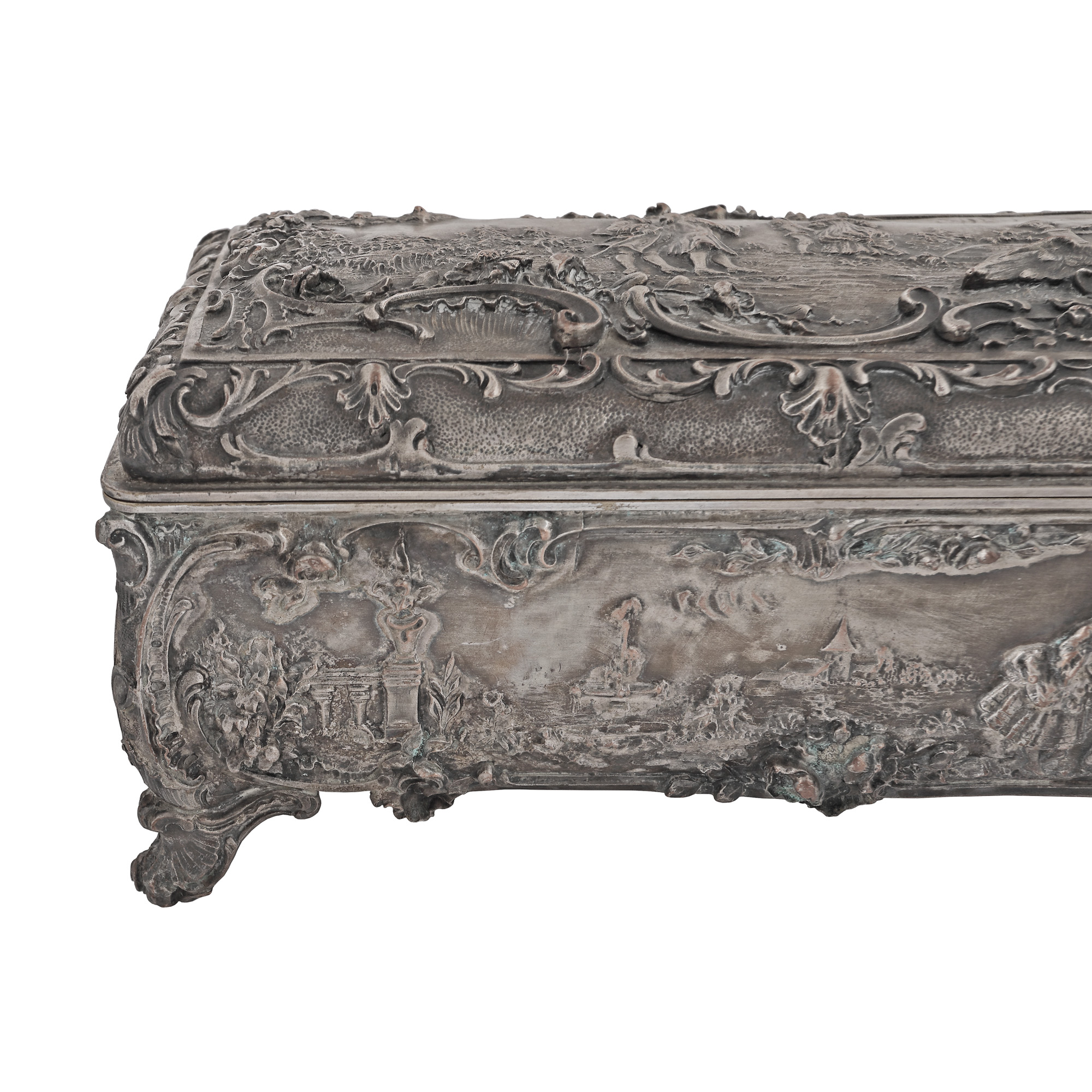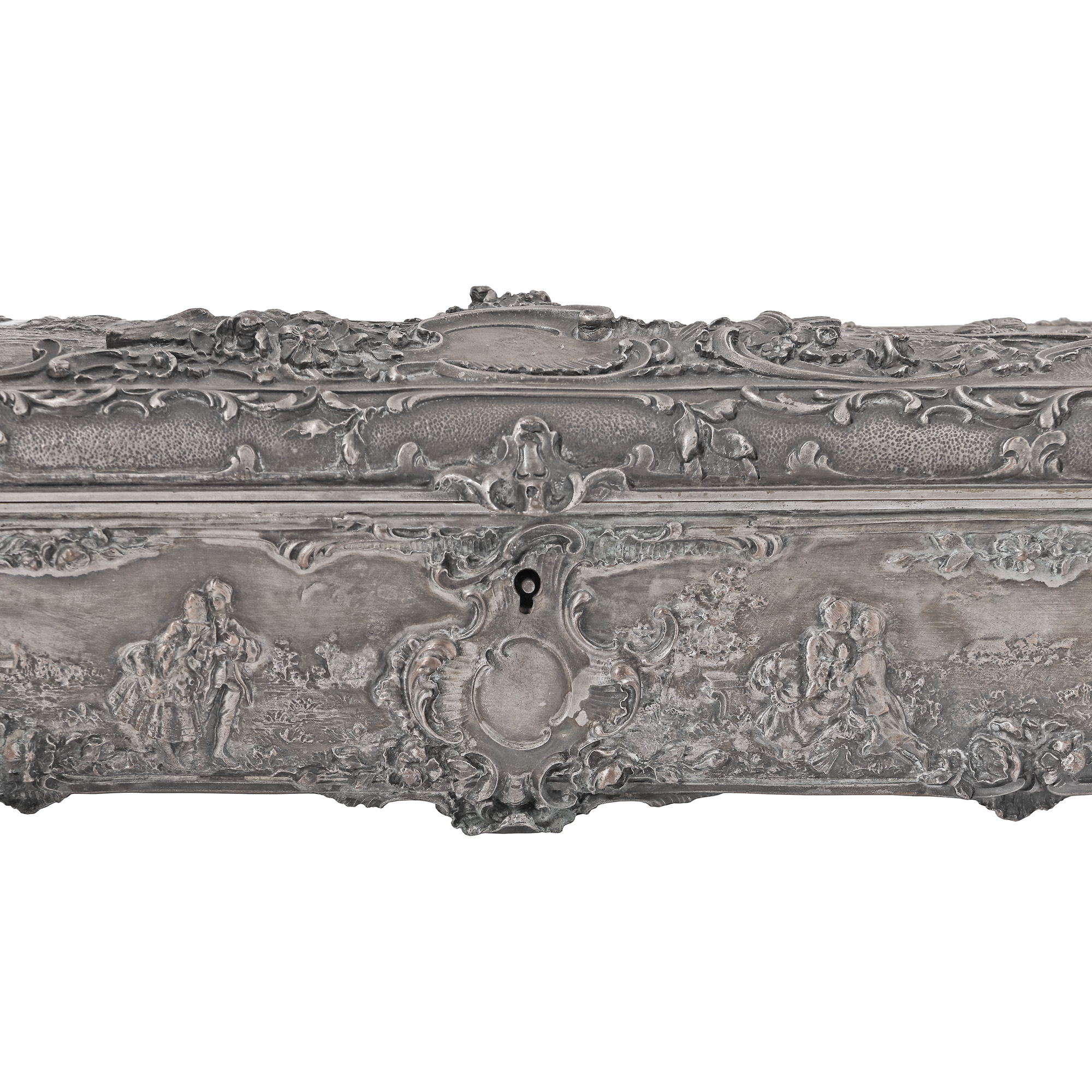 30. Casetă pentru bijuterii în stil Ludovic XV, decorată cu scene galante și motive florale, sfârșitul sec. XIX