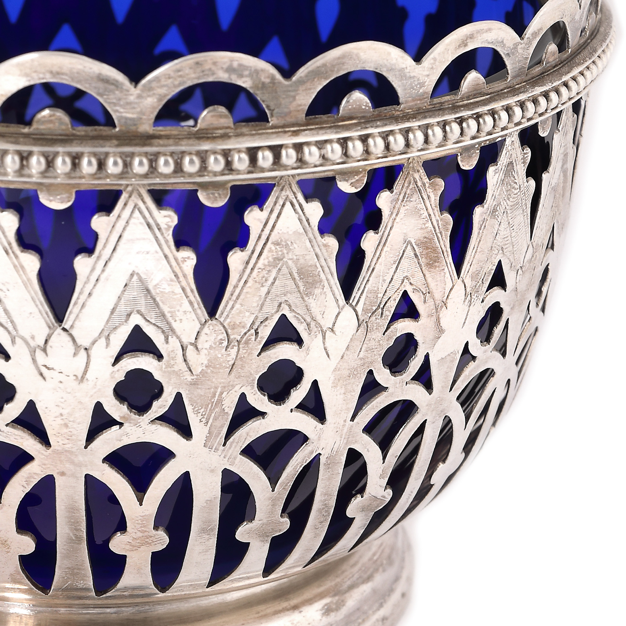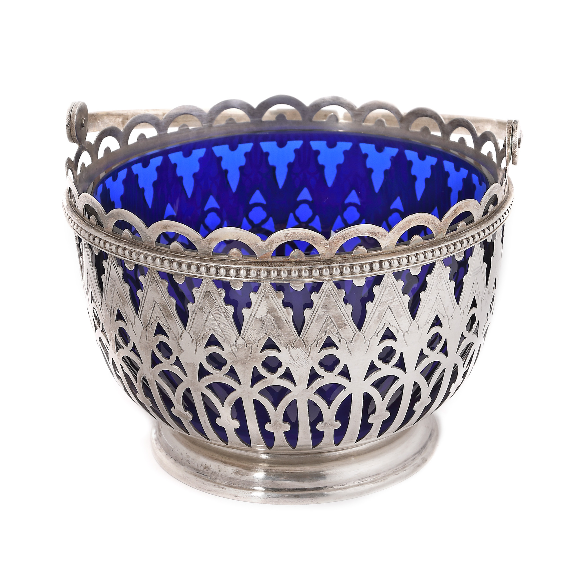 27. Coș cu ansă mobilă din argint și sticlă cobalt, atelier Bruno Pampurini [Cca. 1950-197]