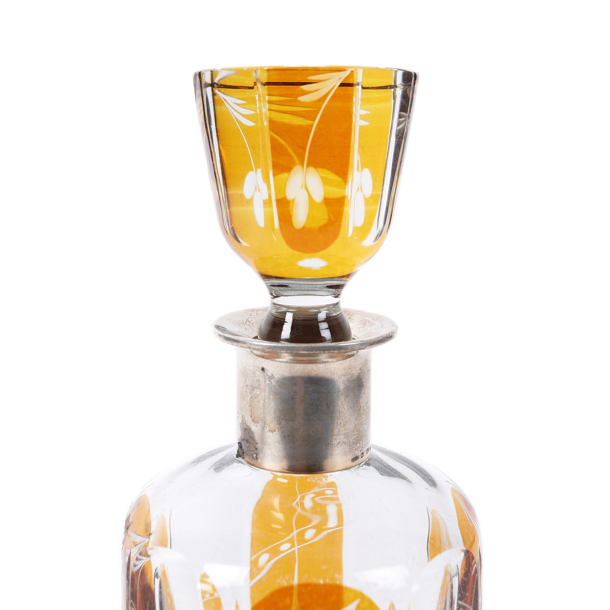 36. Flacon din cristal Hovmantorp, cu manșon din argint, atelier Gustav Dahlgren & Co. cu decor gravat, 1948