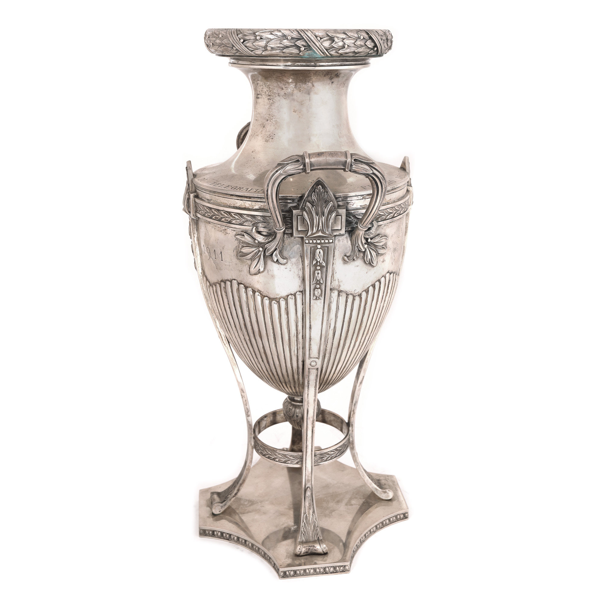 43. Impozantă cupă din argint în stil Neoclasic, manufactura Bremer Silberwarenfabrik, prima jumătate a sec. XX