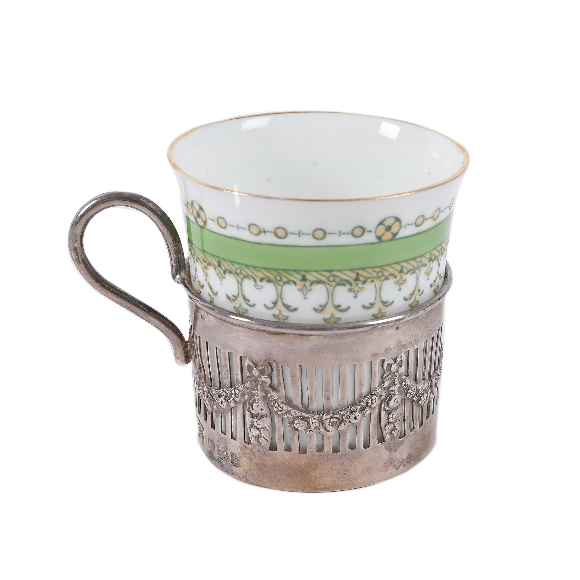 20. Rafinată garnitură pentru cafea sau ceai, din porțelan Foley și argint Travis, Wilson & Co., 1910-1916, însoțită de cutie originală
