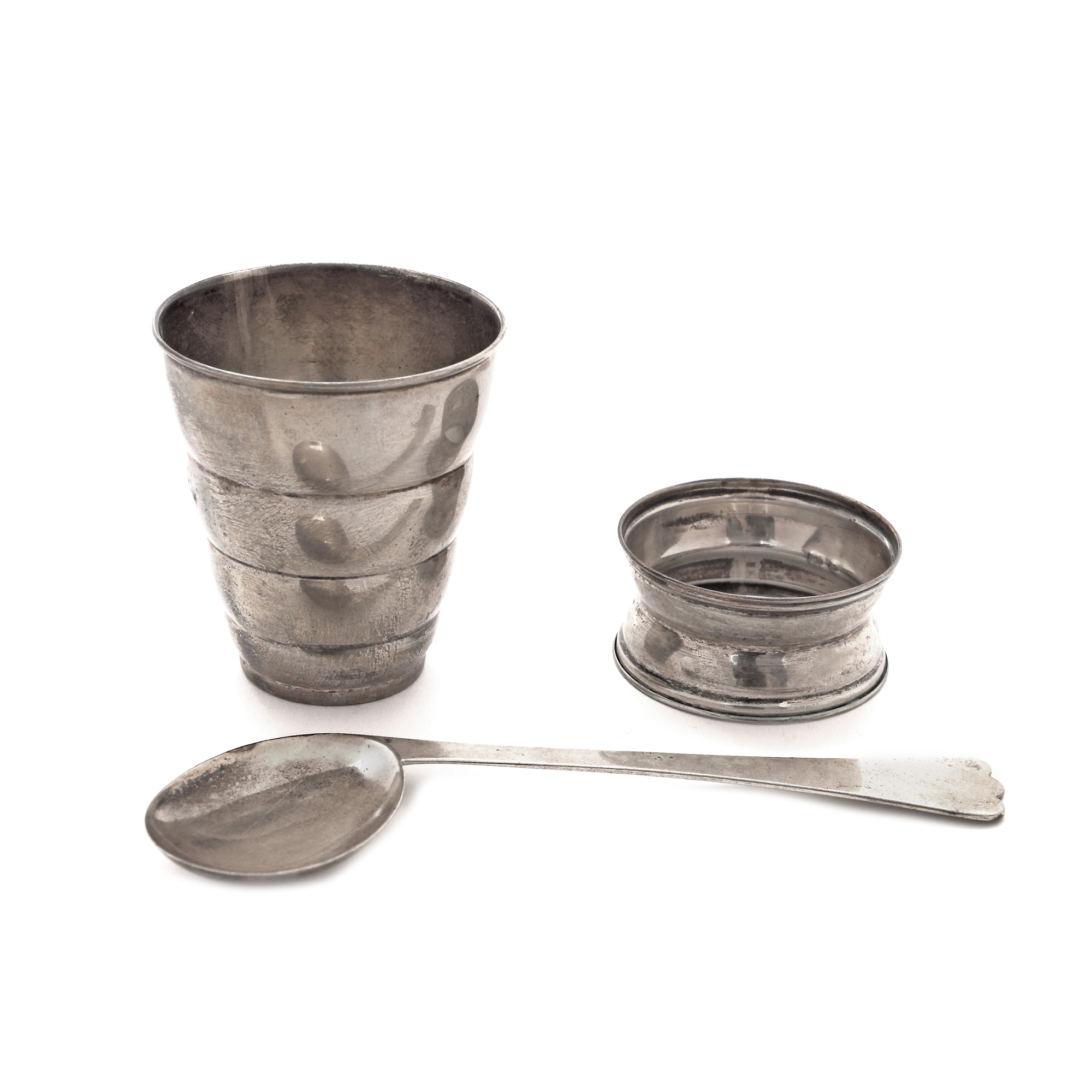 12. Set format din pahar, linguriță și inel pentru șervet din argint, pentru ceremonia botezului însoțit de cutie originală [Cca. 1944-1968]