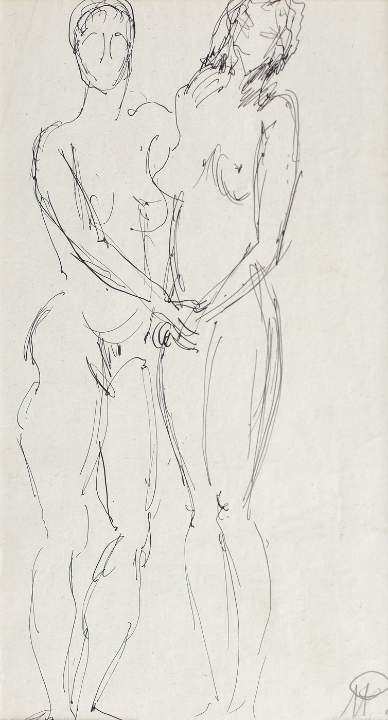 semnat dreapta jos, în creion, în monogramă, ”MP”