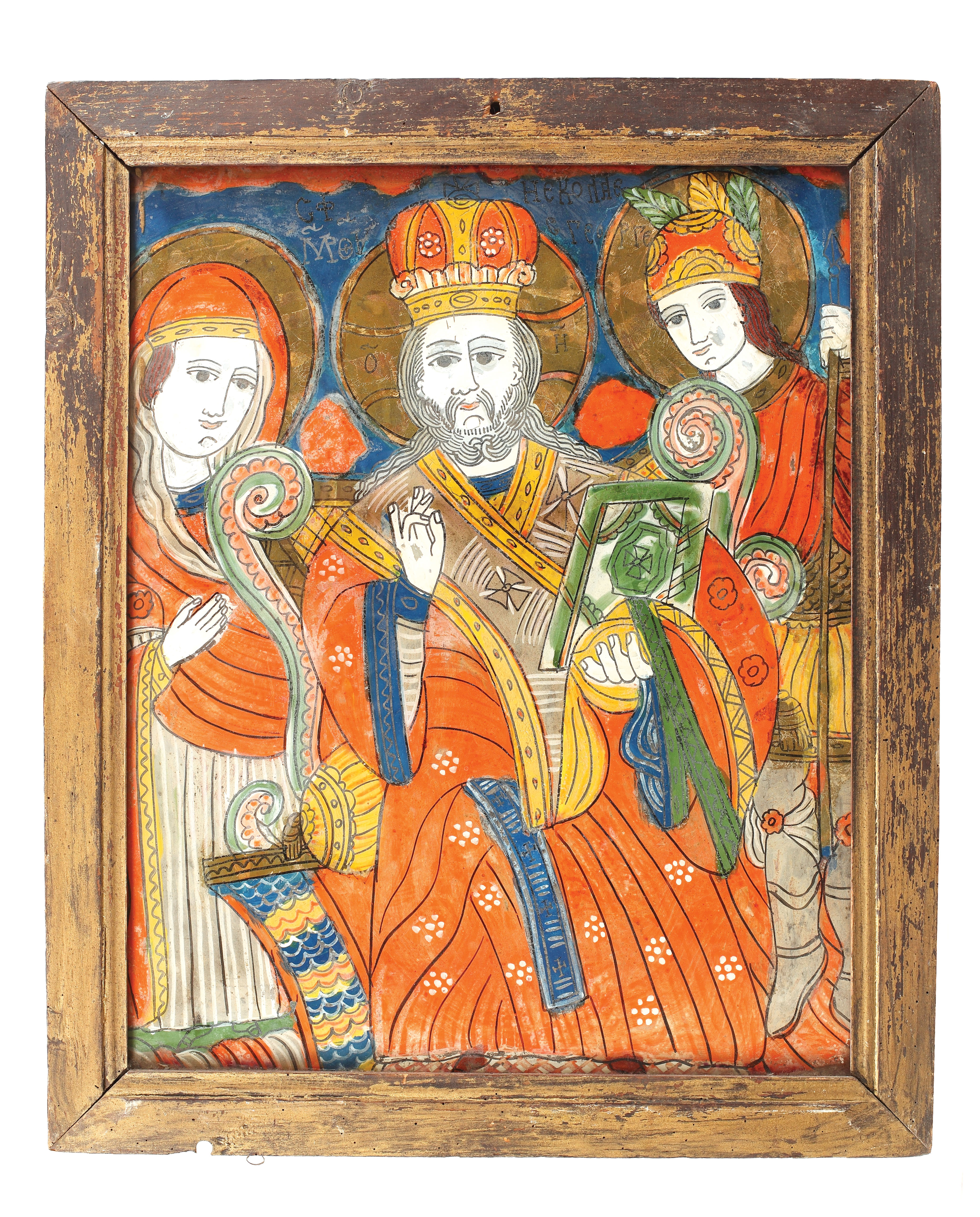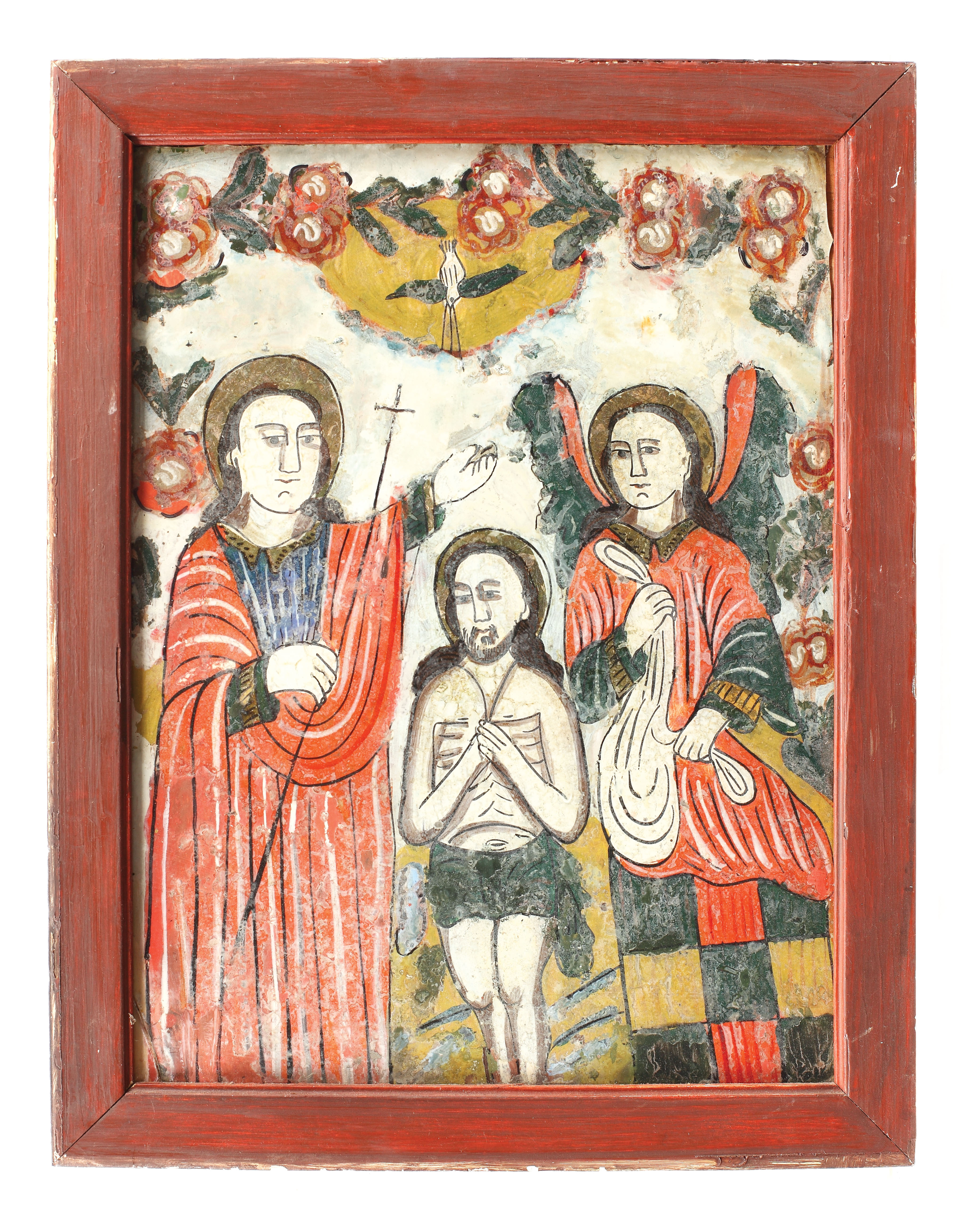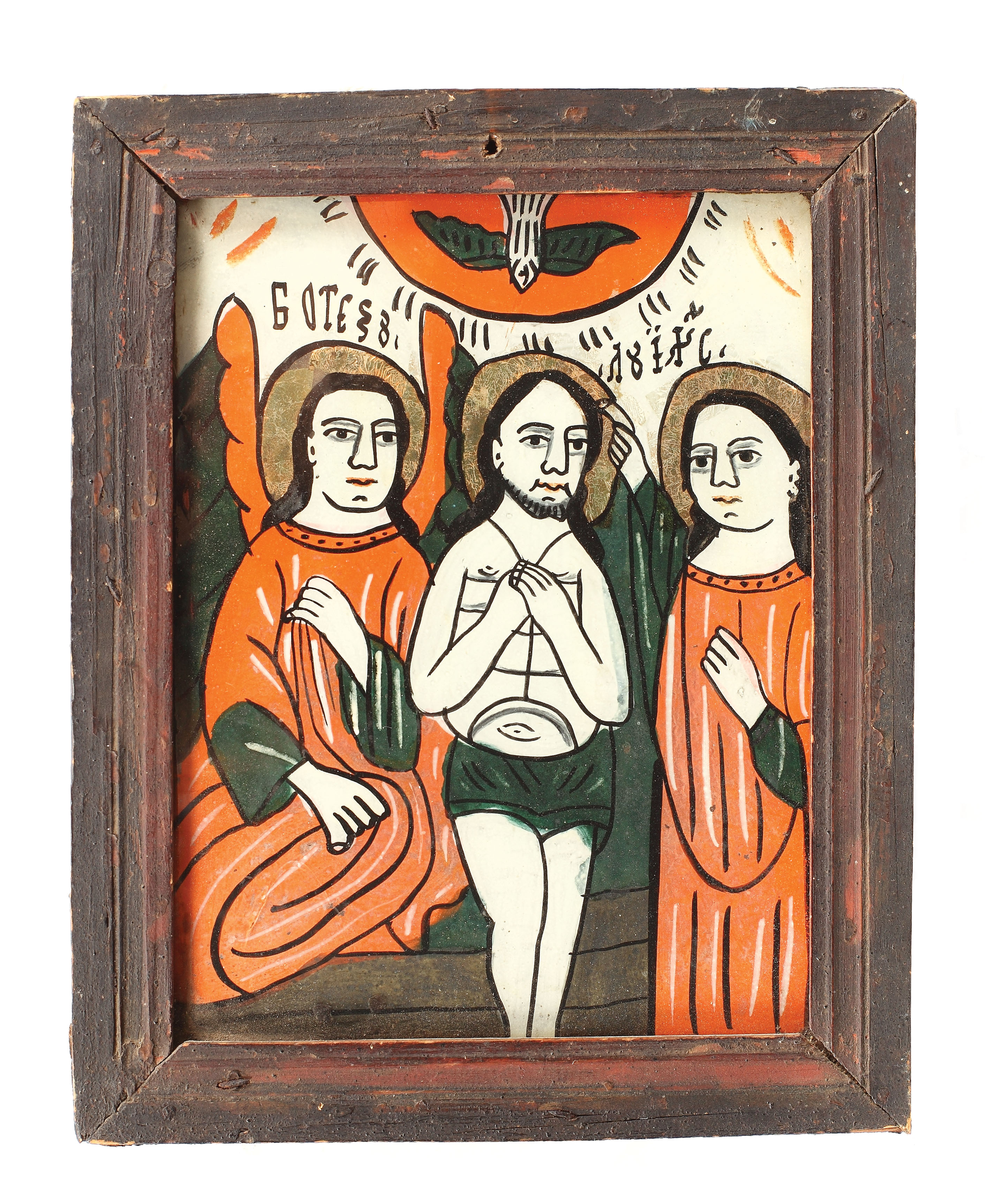 3. Icoană pe sticlă, ”Botezul Domnului”, școală transilvăneană, sec. XIX