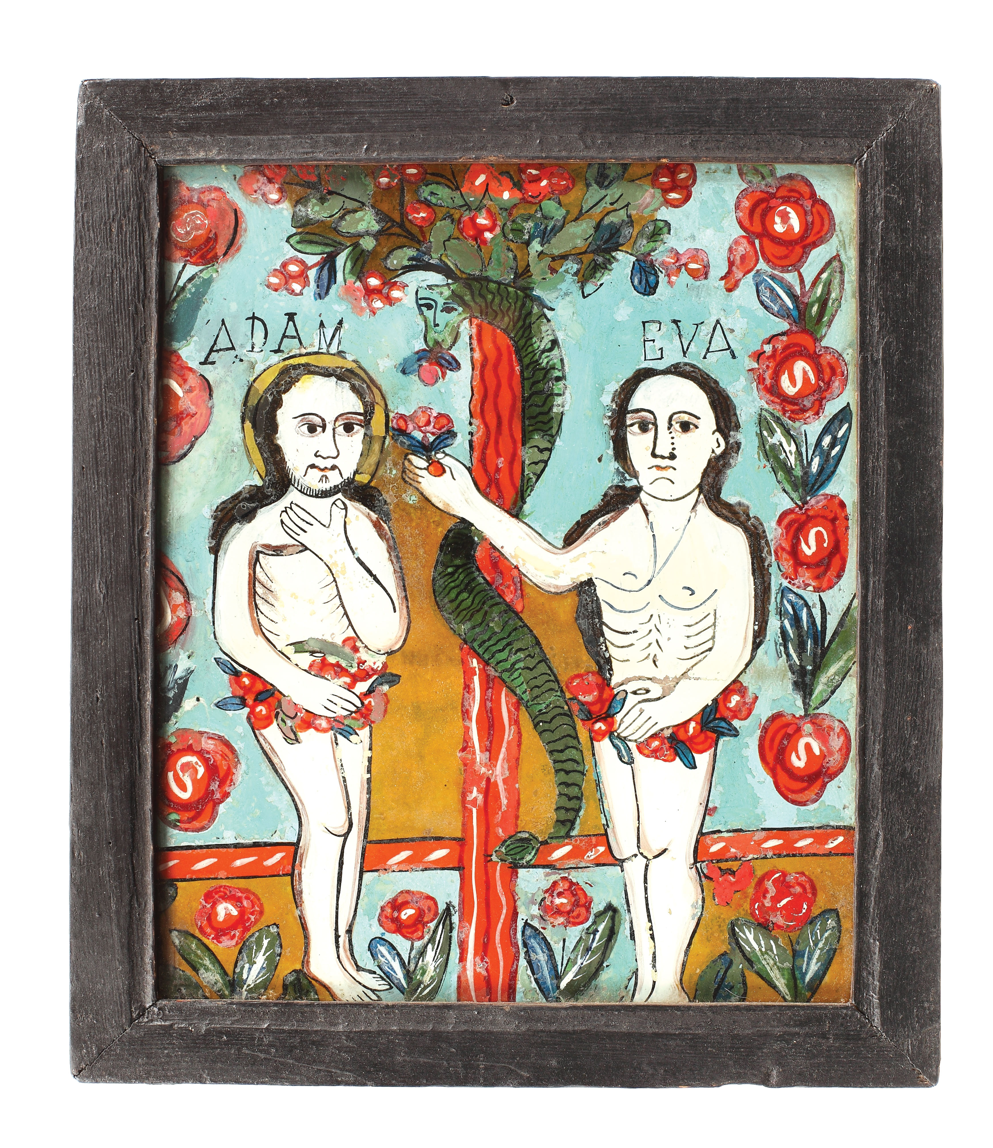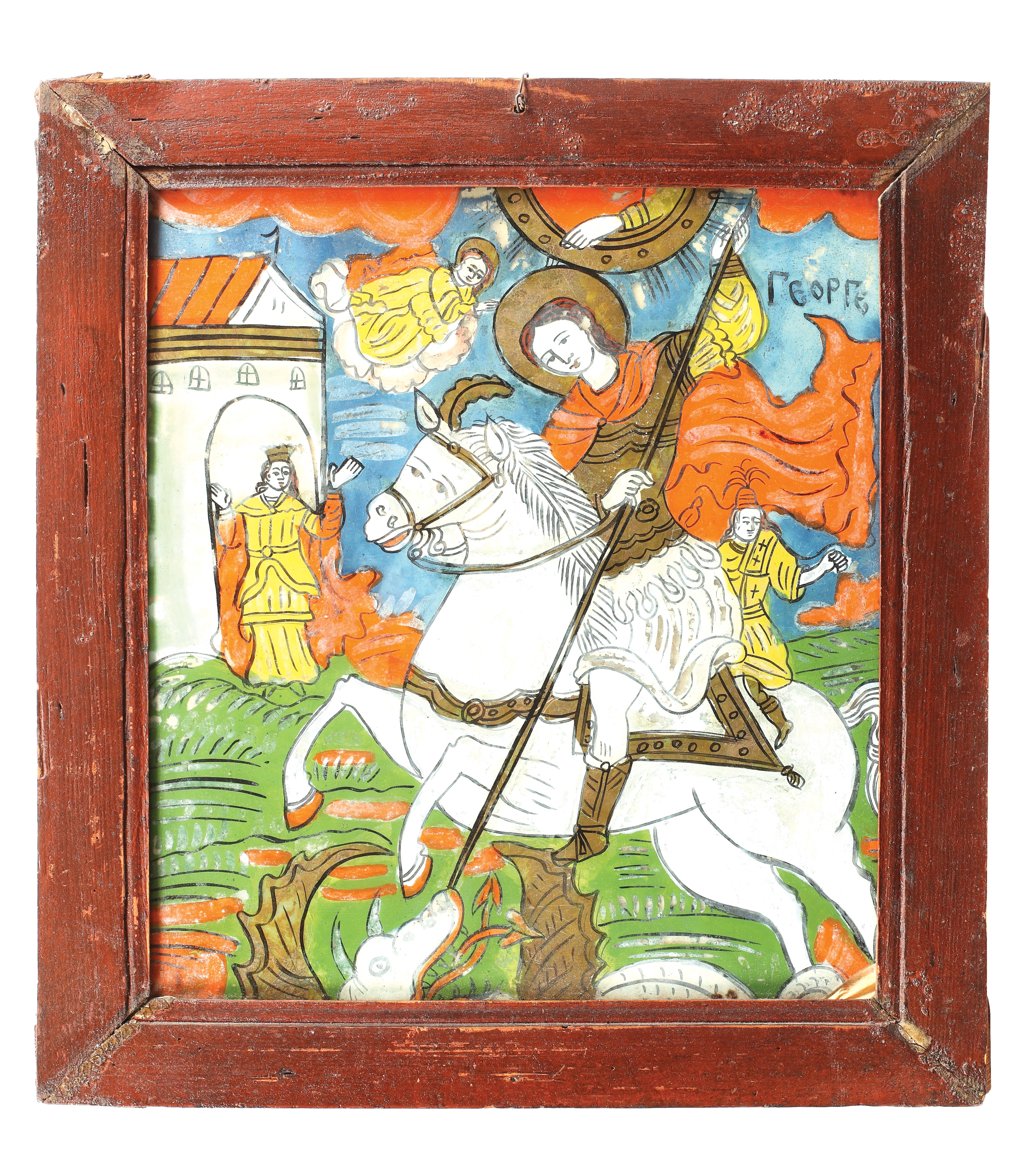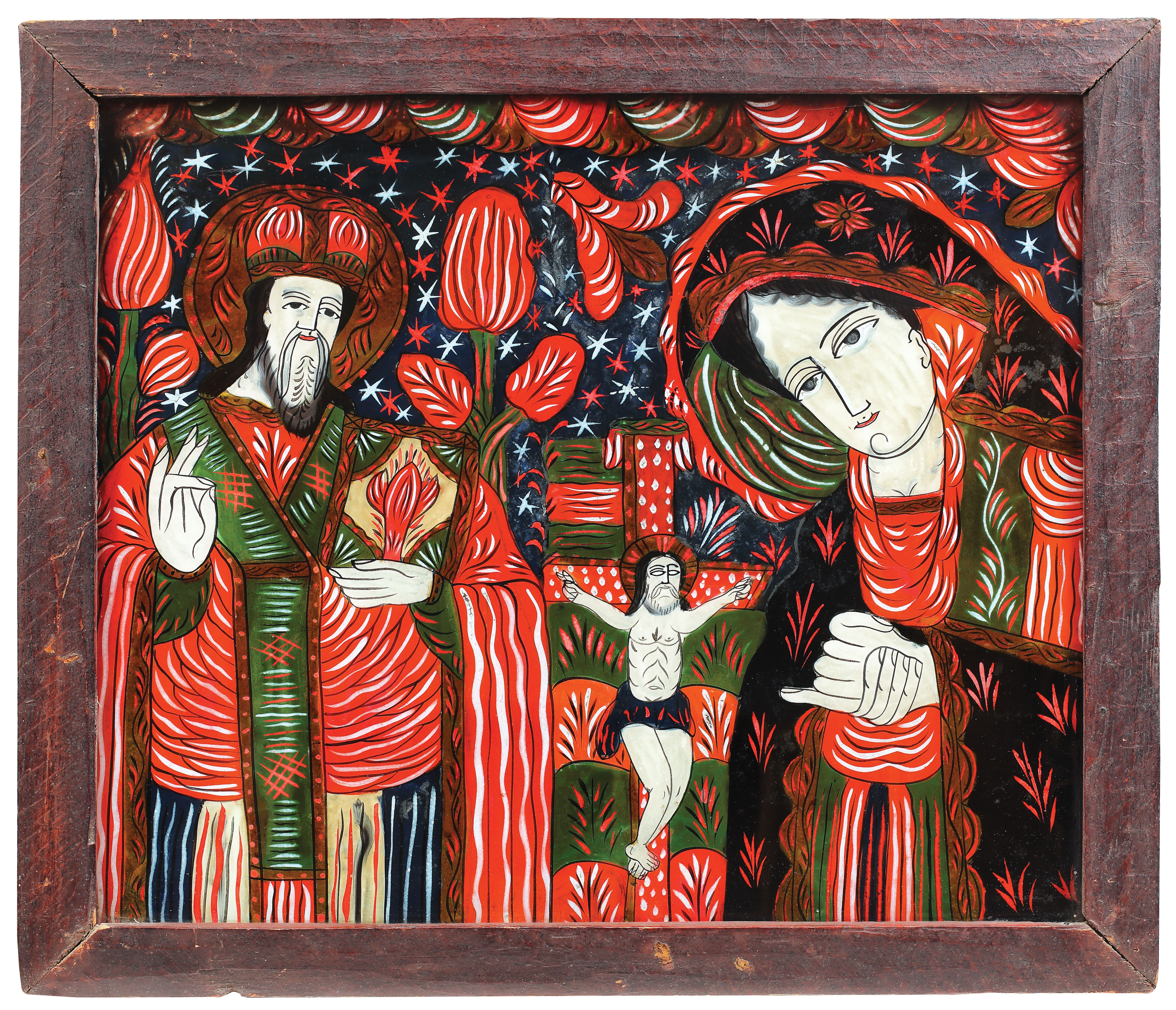 3. Icoană pe sticlă, ”Botezul Domnului”, școală transilvăneană, sec. XIX