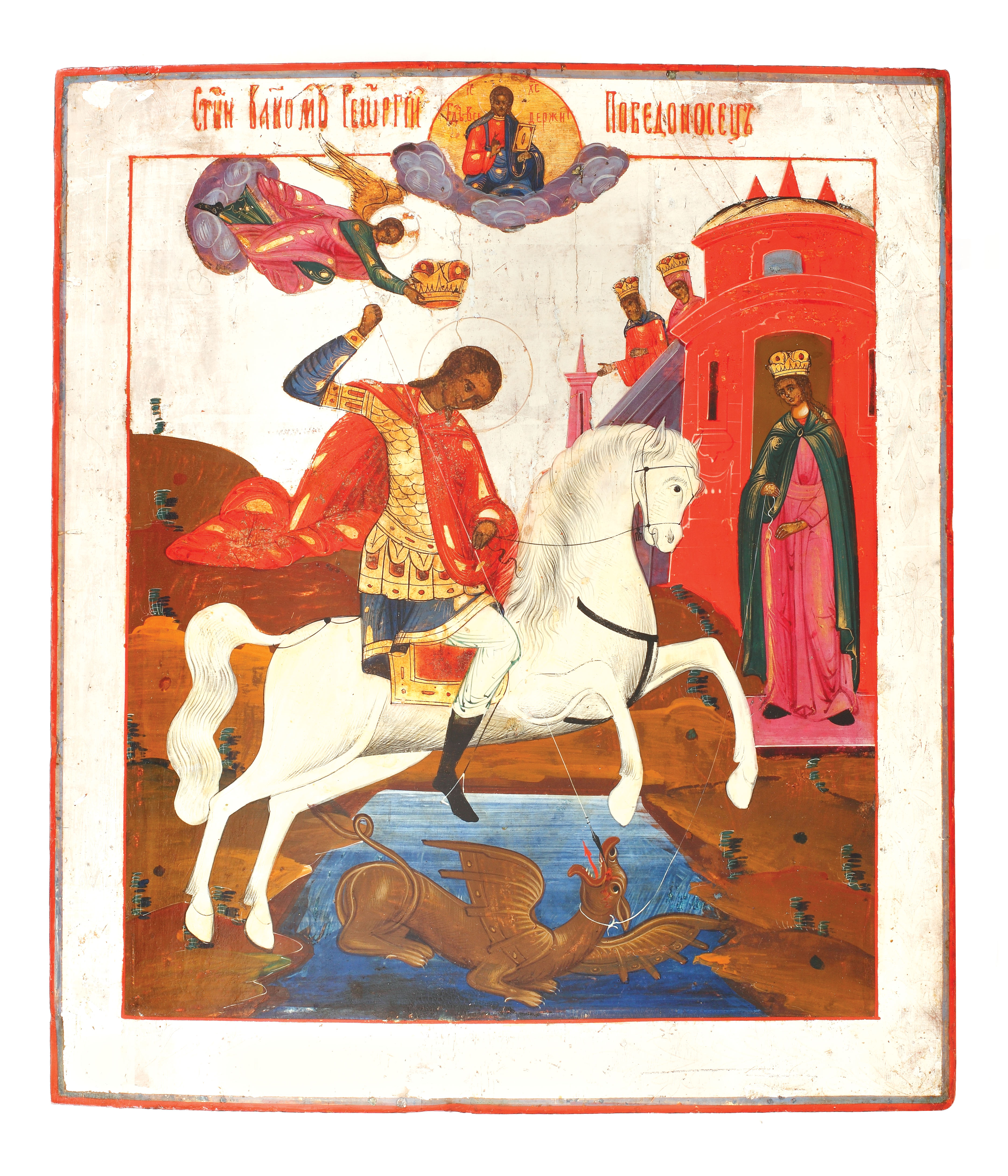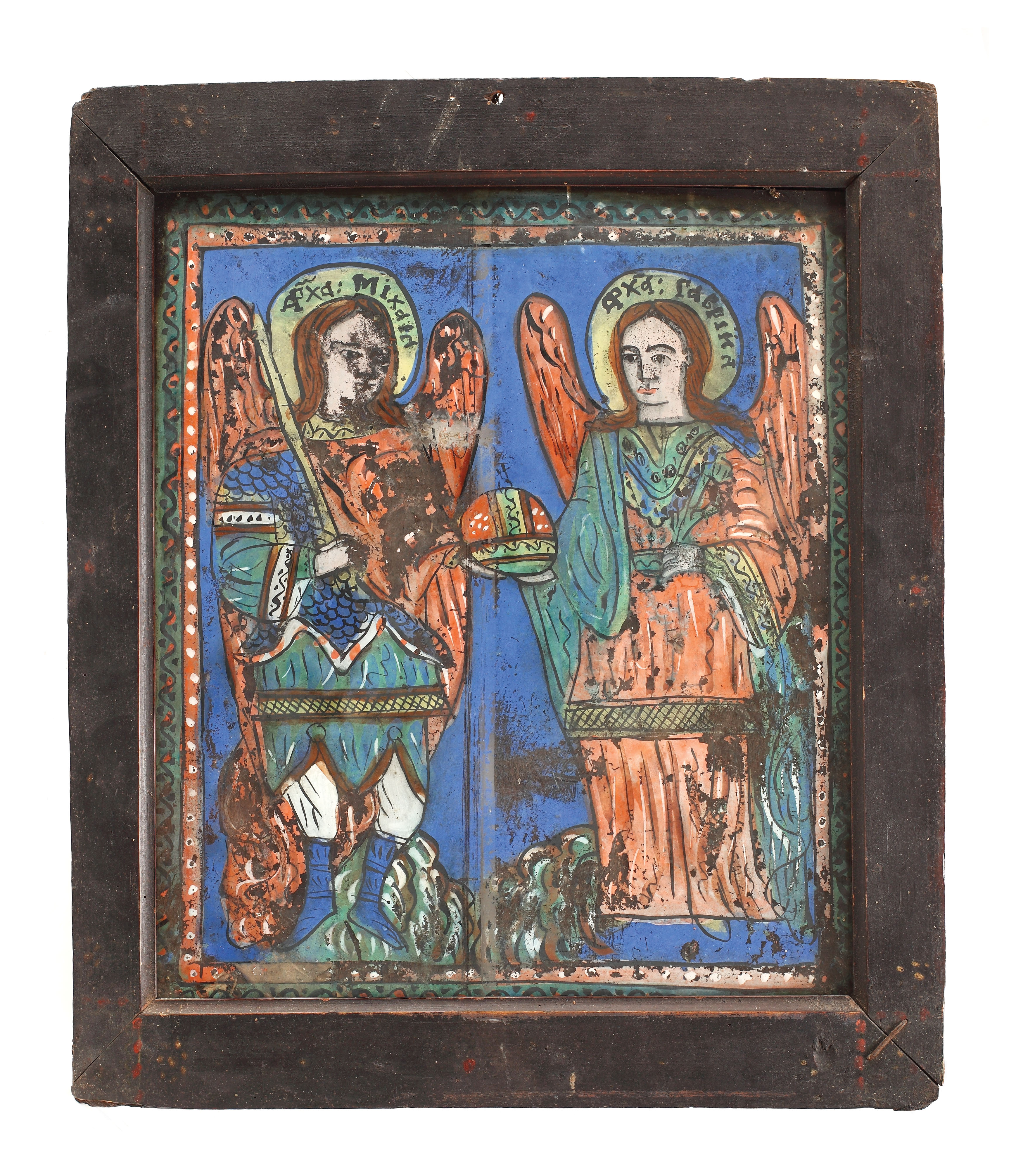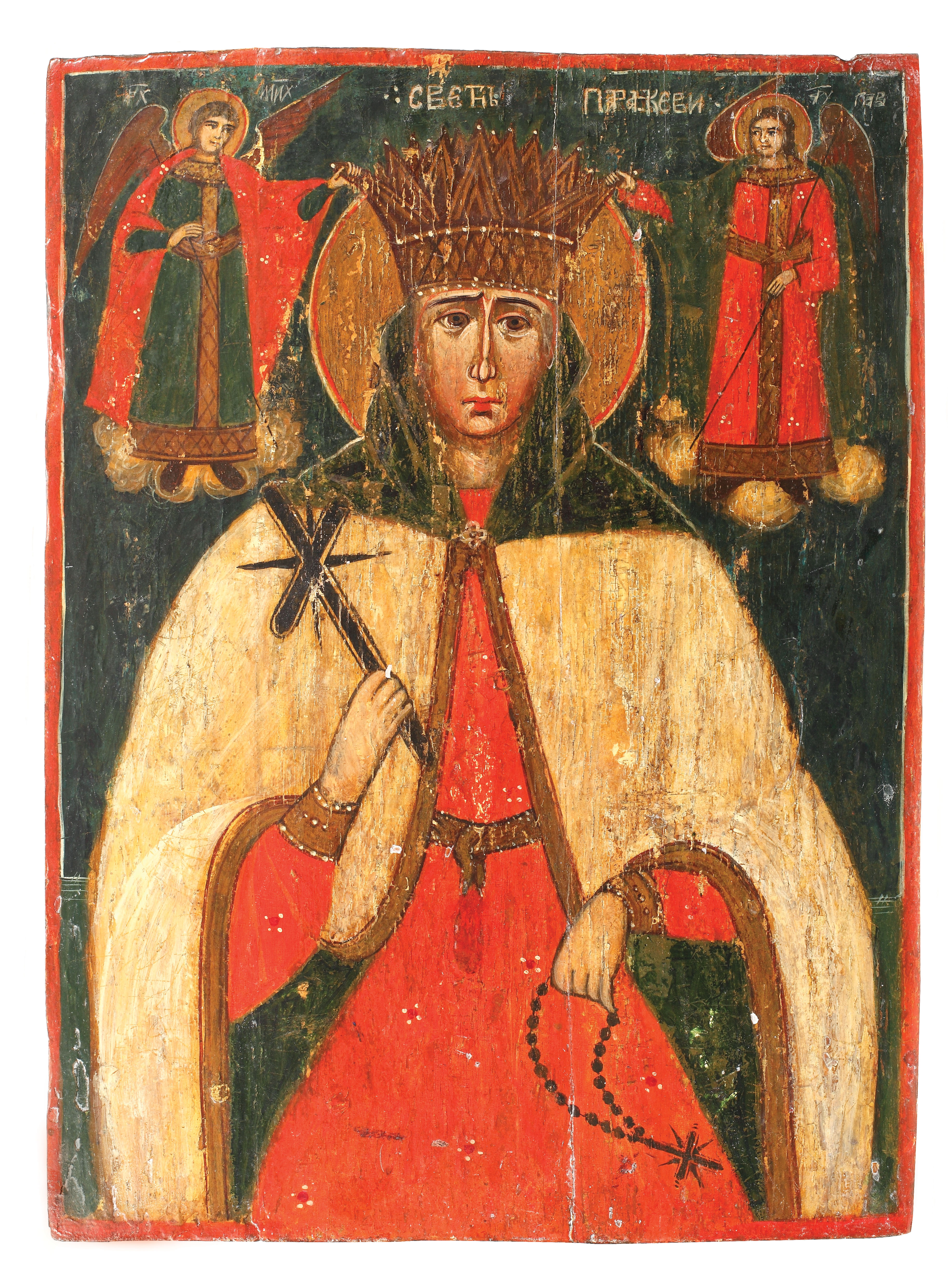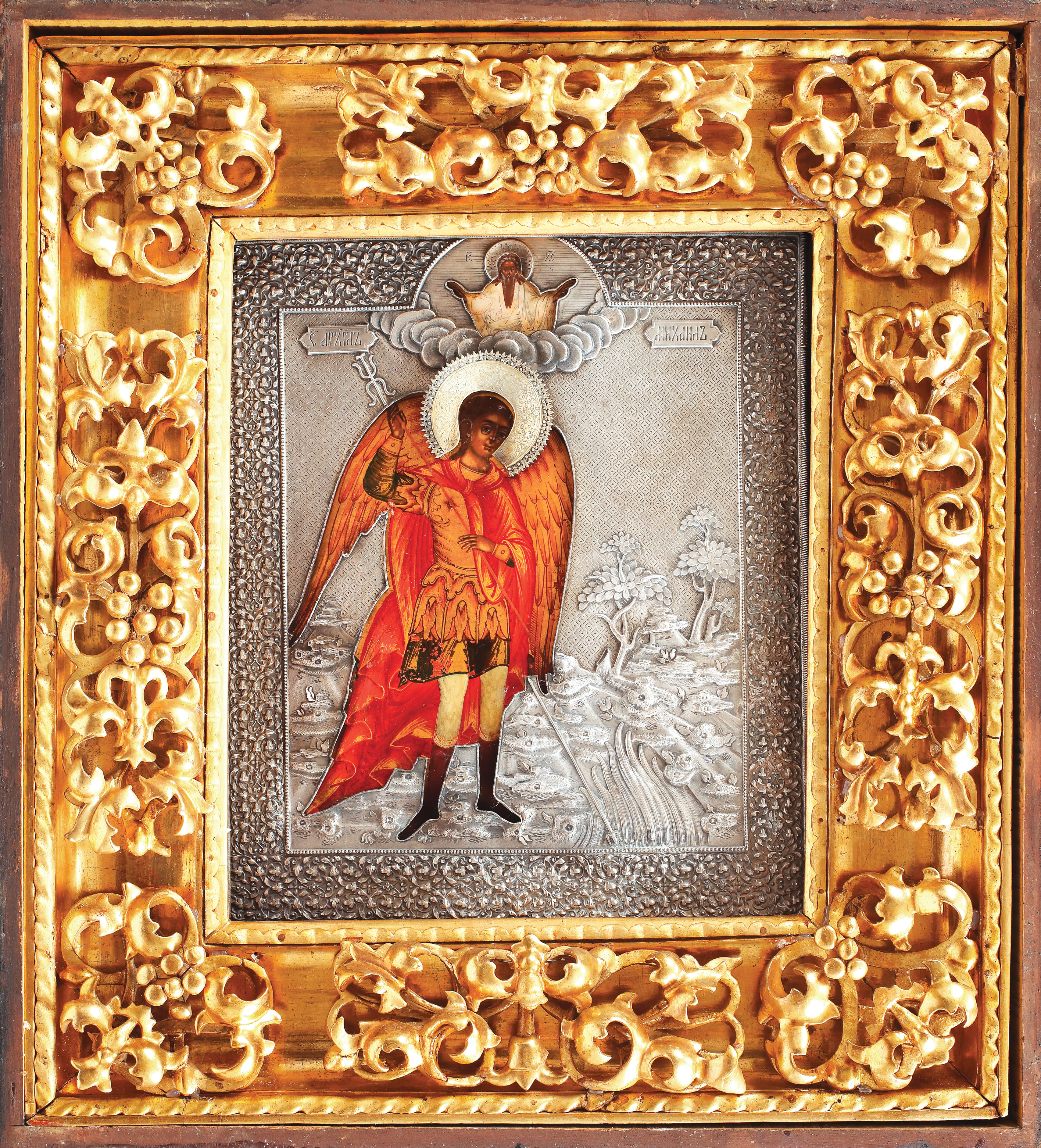 24. Superbă icoană pe lemn, "Arhanghelul Mihail", școală rusă, sec. XIX