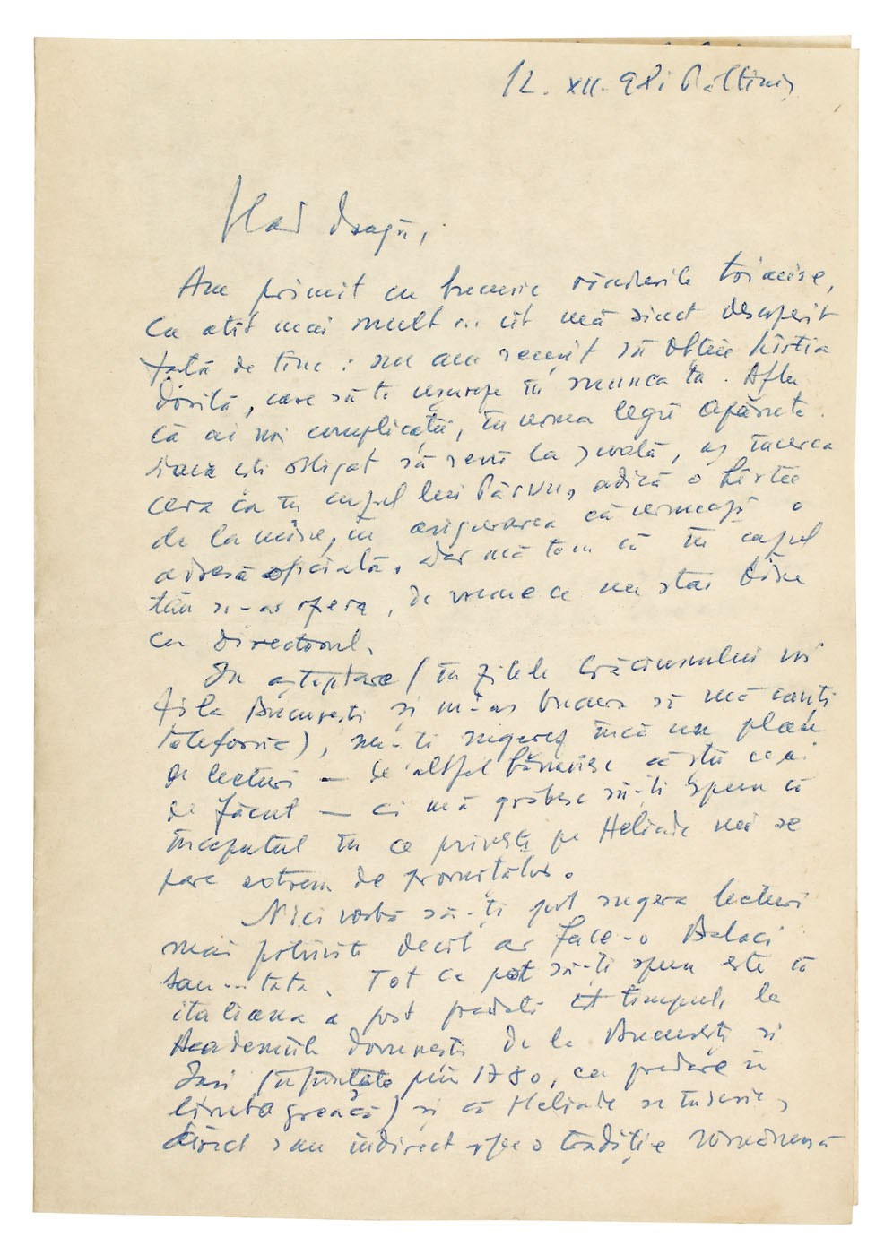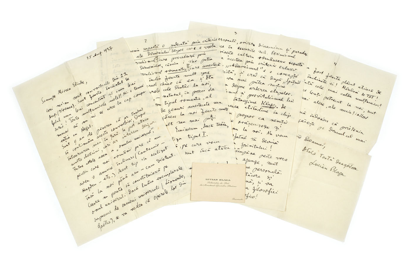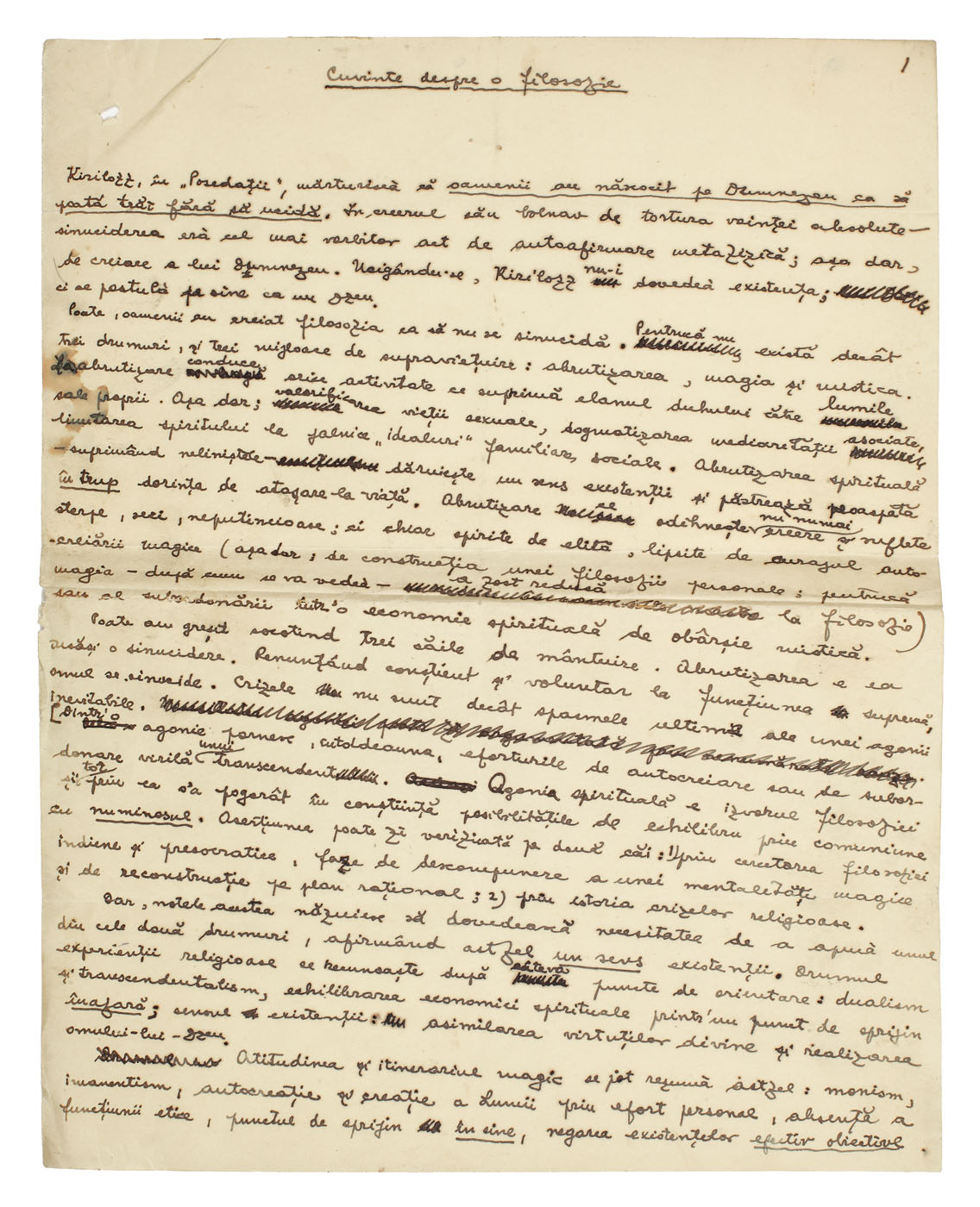8. "Cuvinte despre o filozofie", manuscris Mircea Eliade, română (3 file)