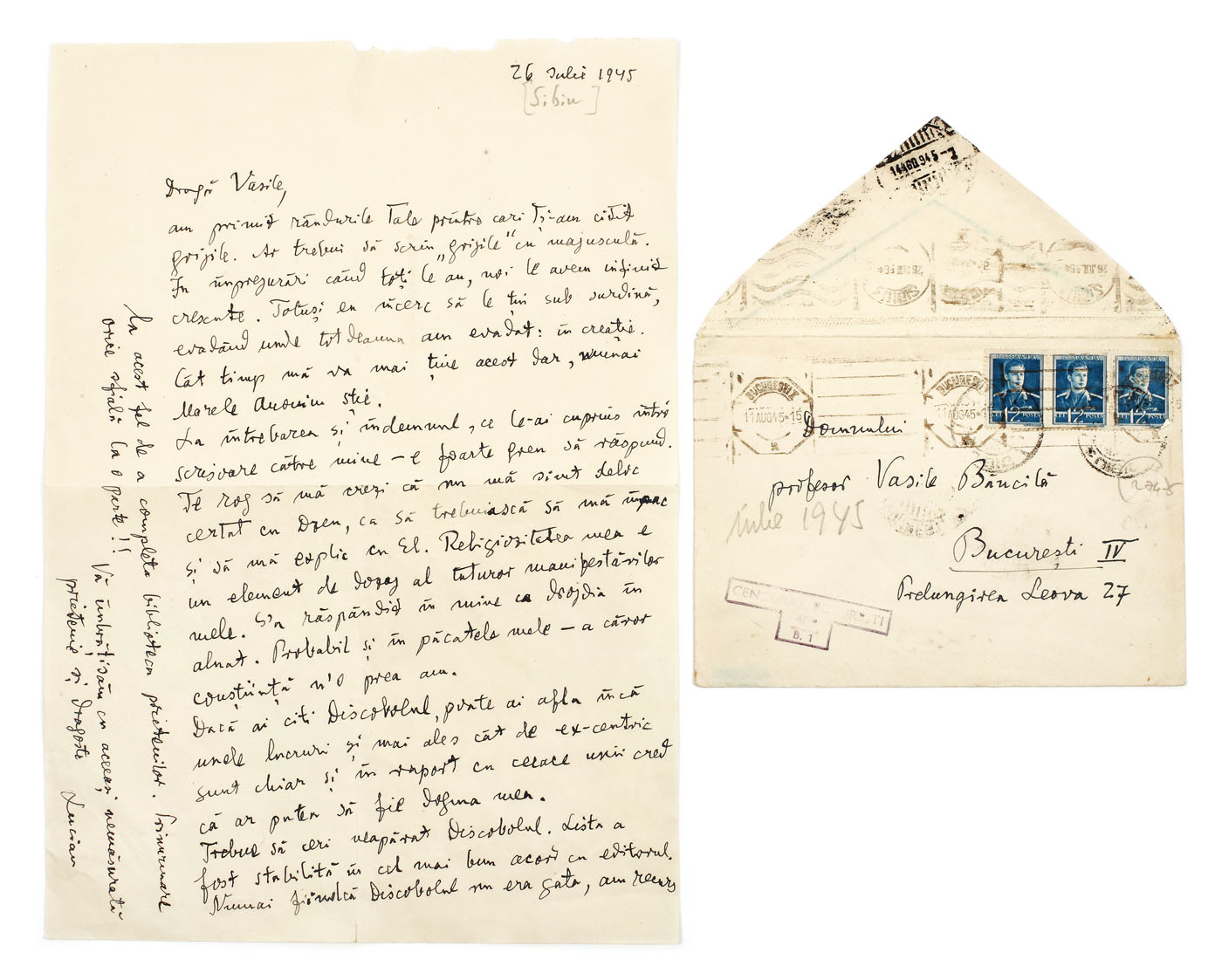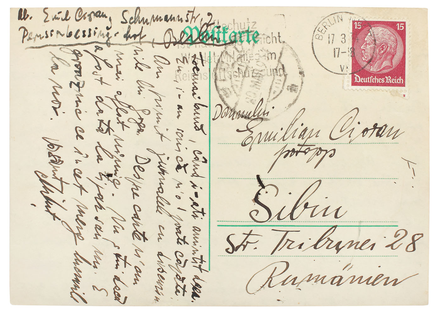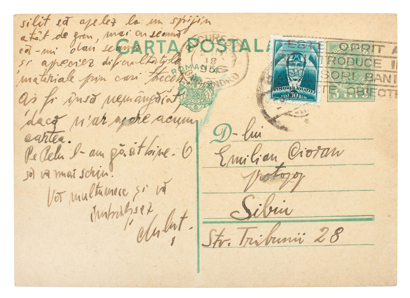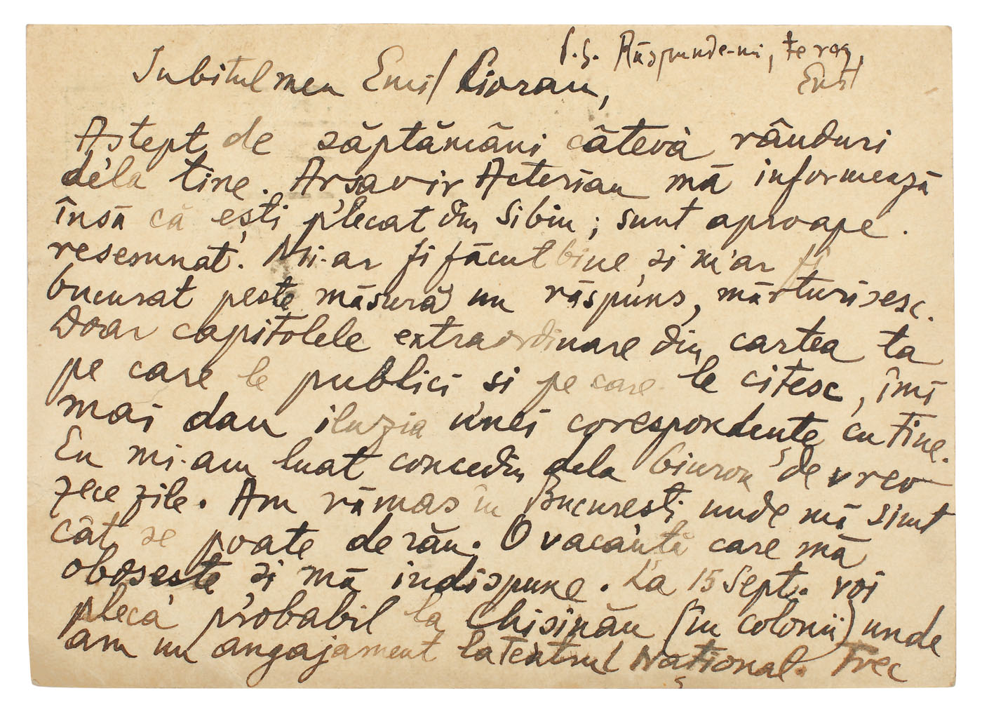 31. Carte poștală trimisă de poetul Emil Botta către Emil Cioran, 1932