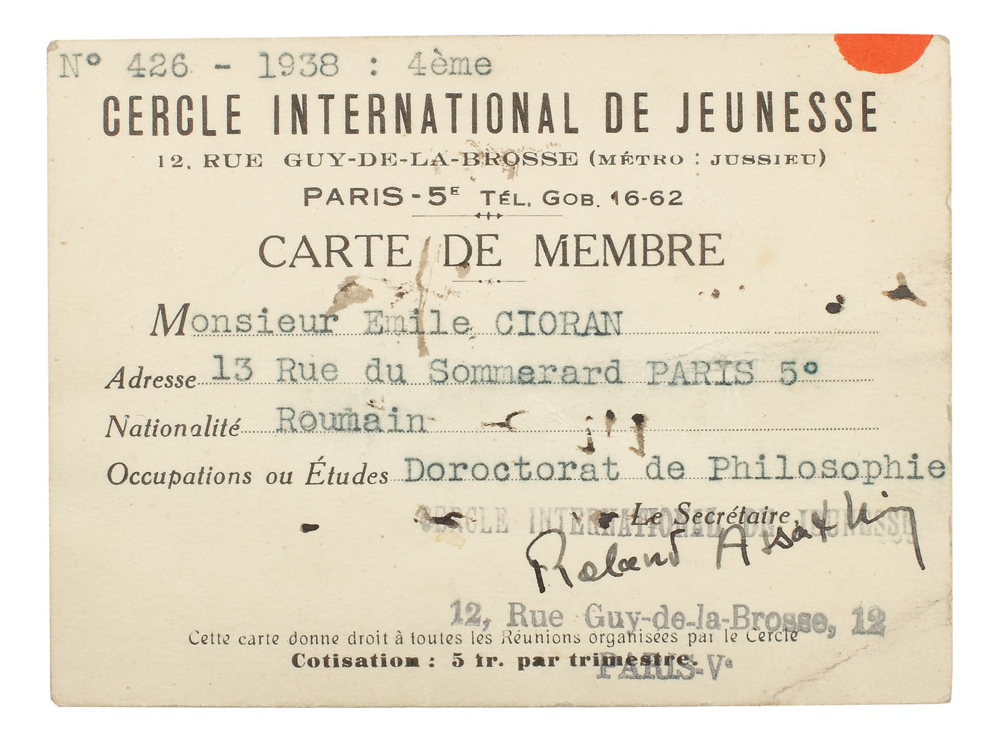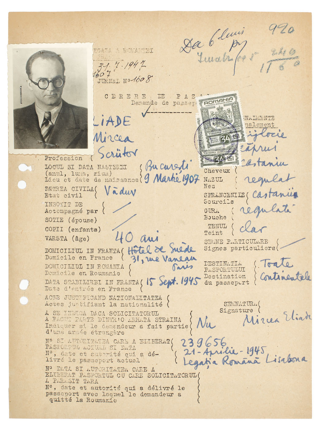 24. Fotografie-portret Emil Cioran, cca. 26 ani, Paris, 1937-1938