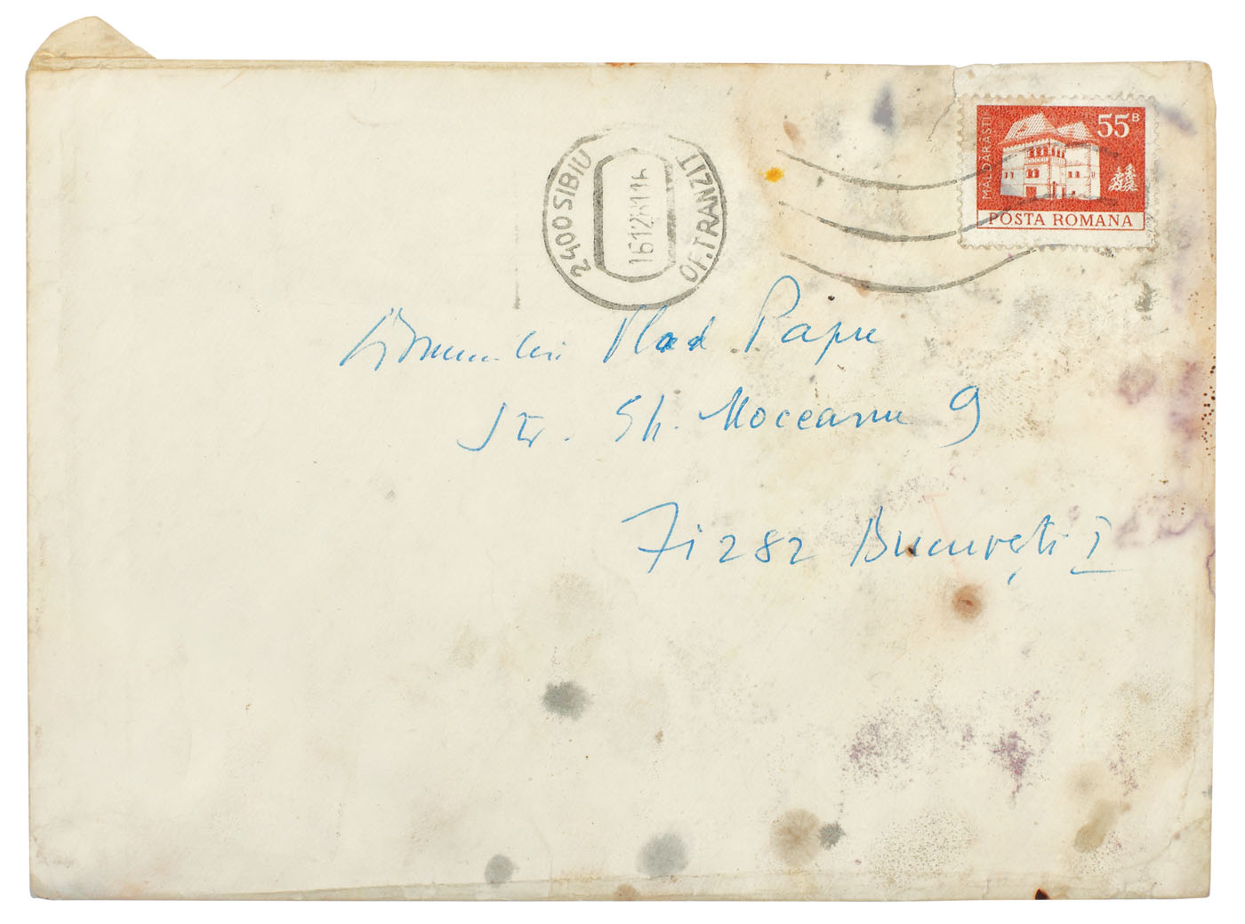 14. Scrisoare trimisă de Constantin Noica către eseistul Vlad Papu, Păltiniș, 12 decembrie 1981 (2 file, însoțită de plic francat)