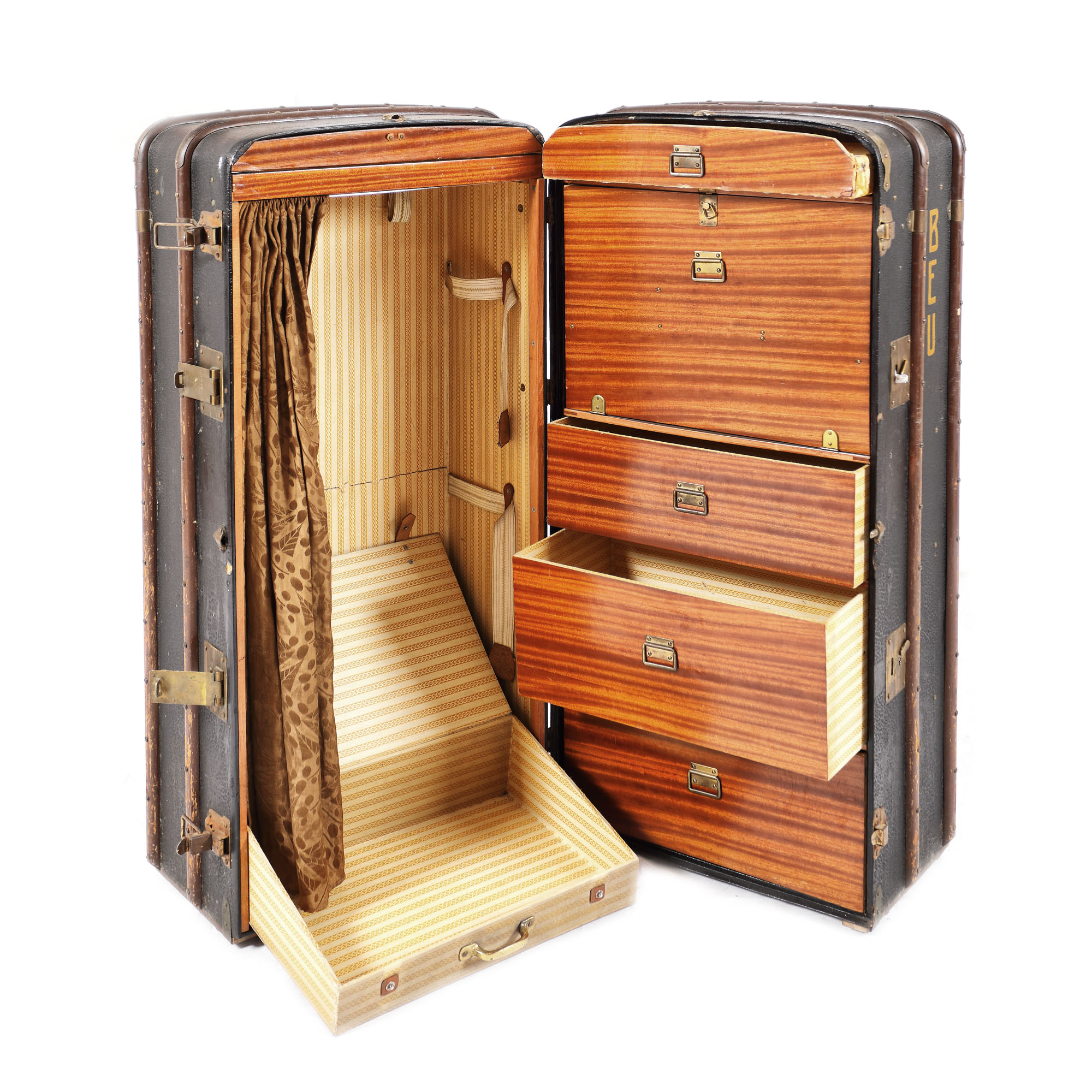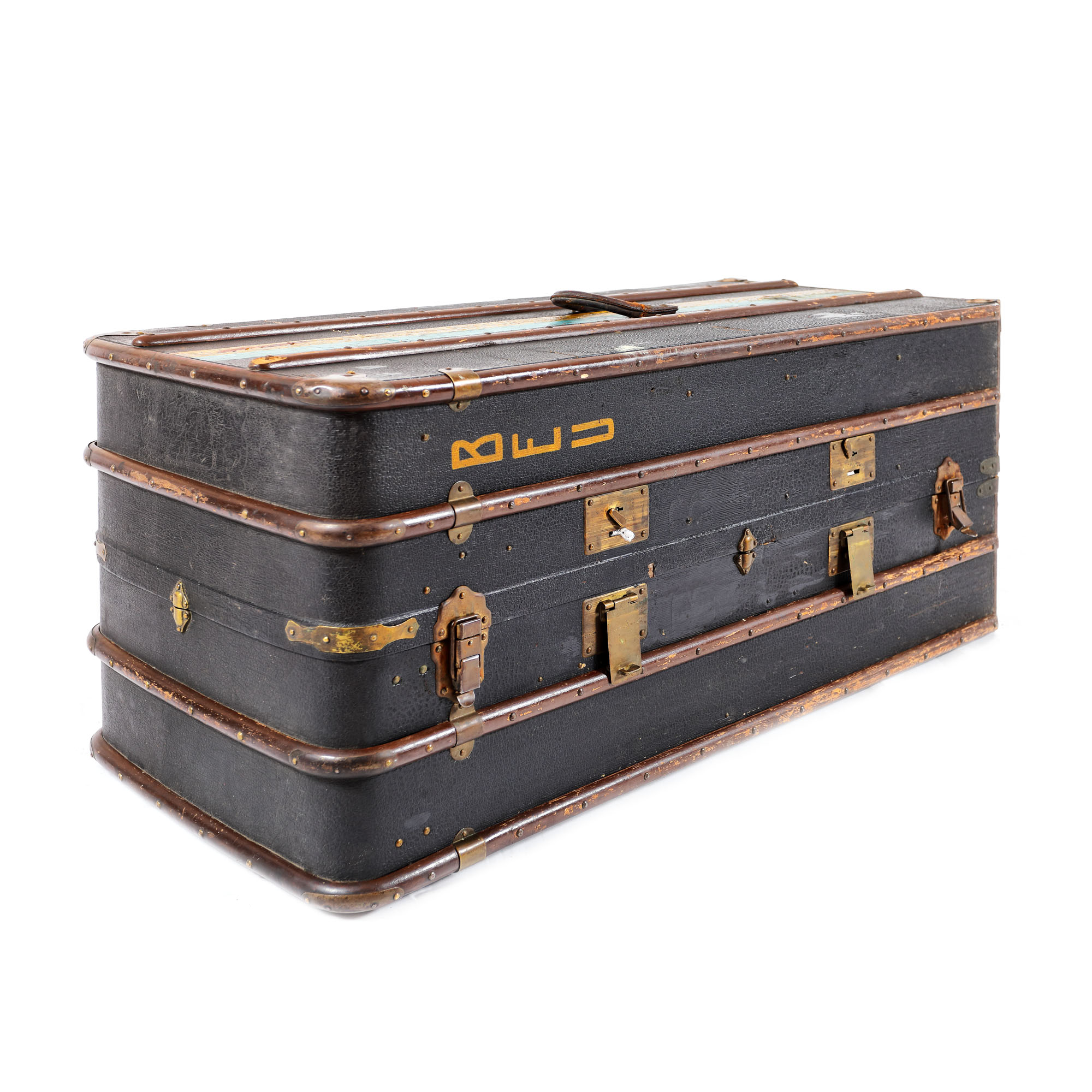 146. Interesant cufăr de călătorie, din piele, casetat, sfârșitul sec. XIX