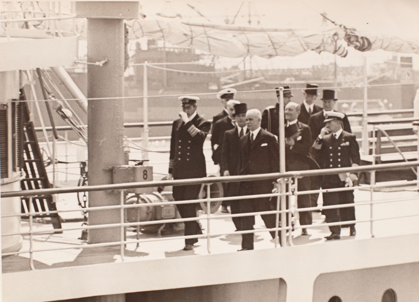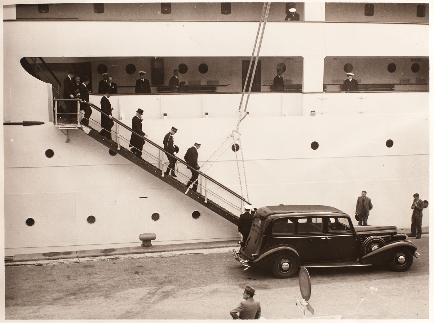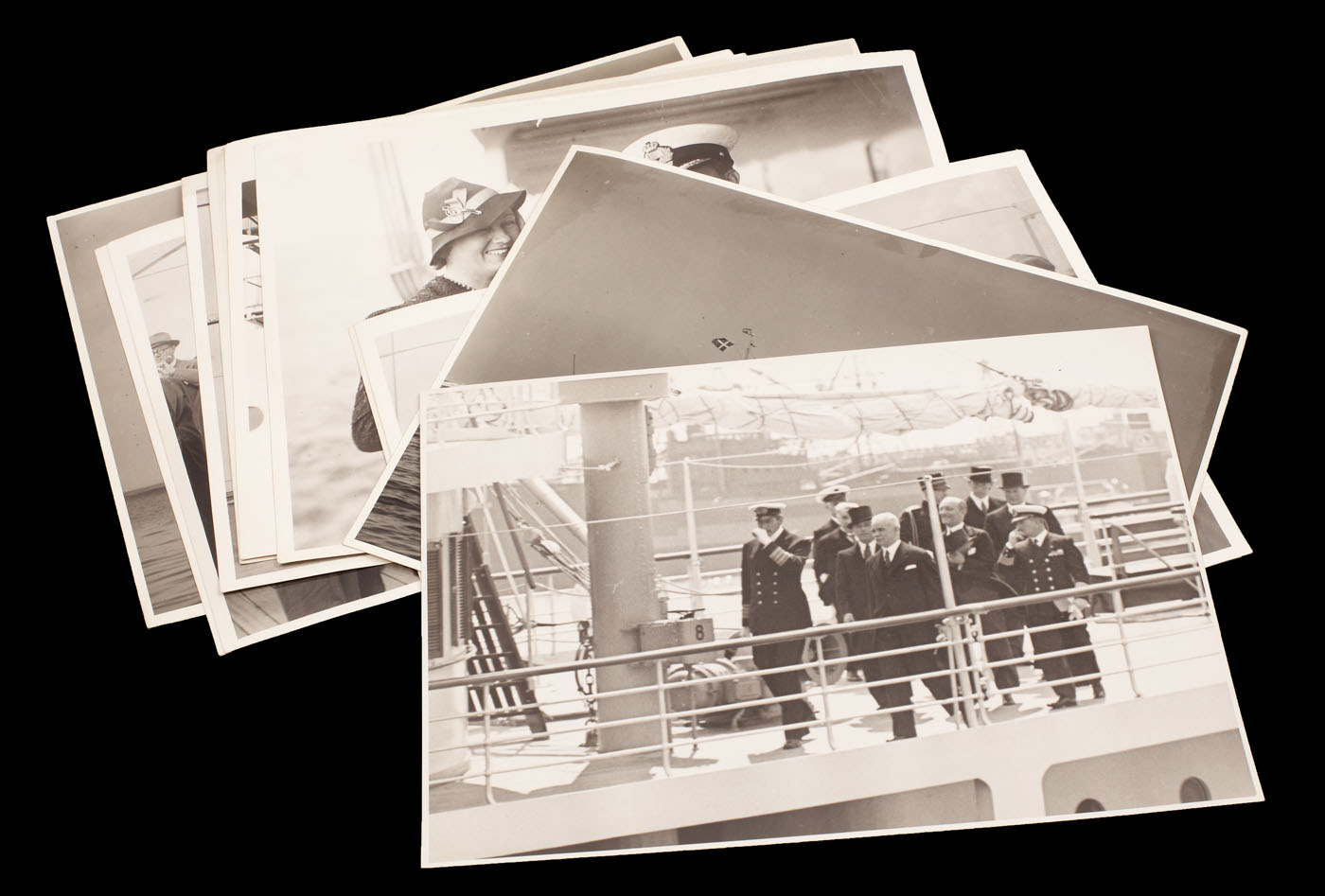 38. Lot format din 11 fotografii cu nava "Transilvania", la preluarea acesteia de către inginerul Ion D. Ghica, reprezentantul Serviciului Maritim Român, 11 iunie 1938, provine din colecţia ing. Ion D. Ghica