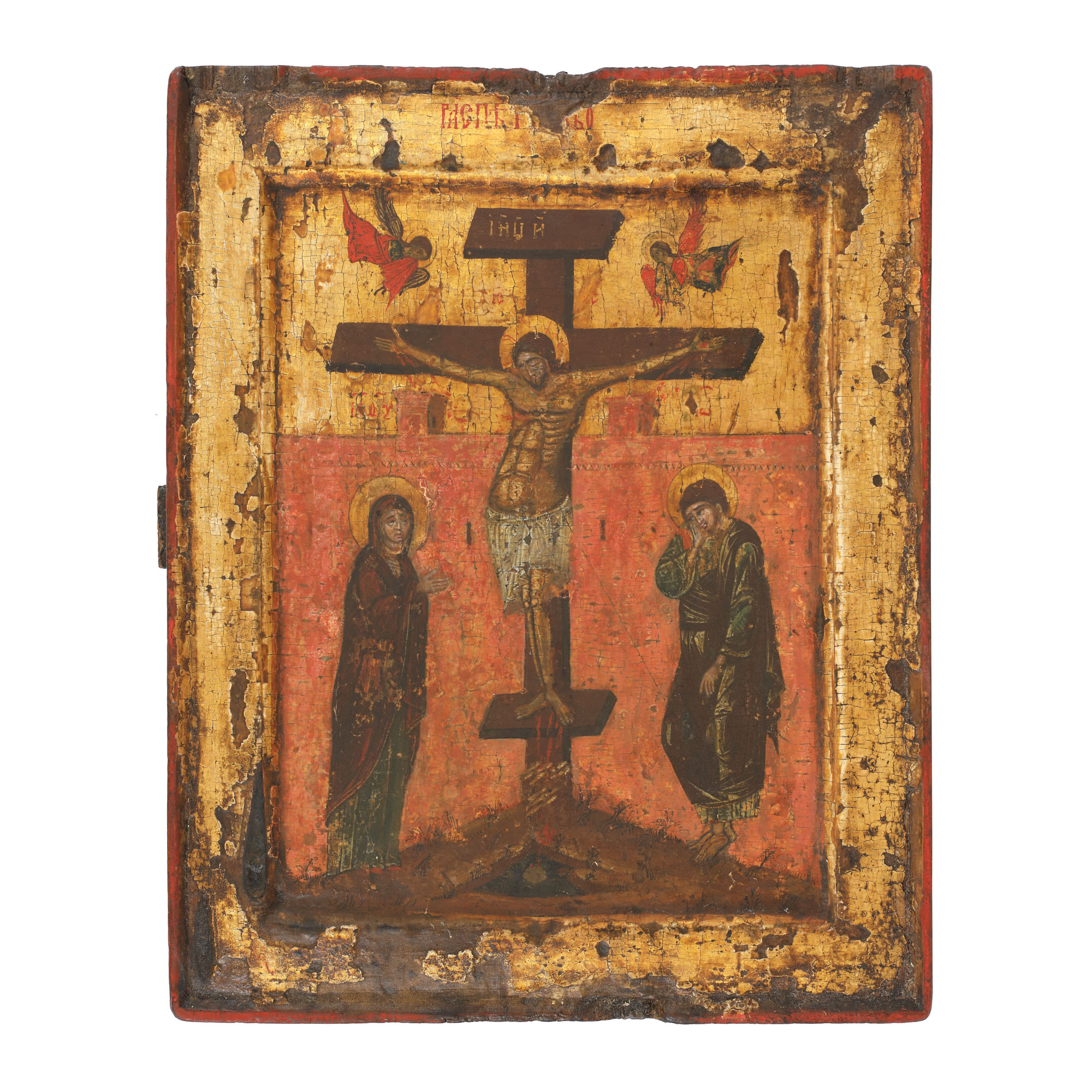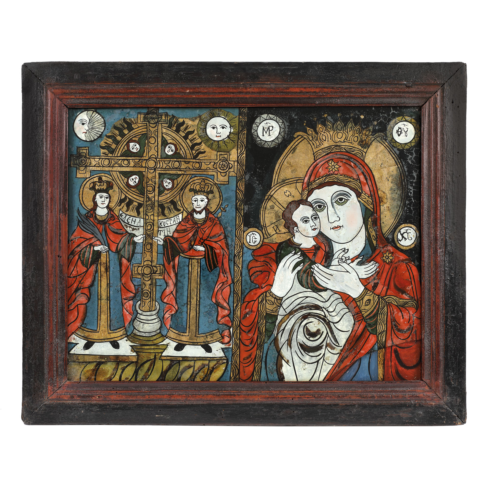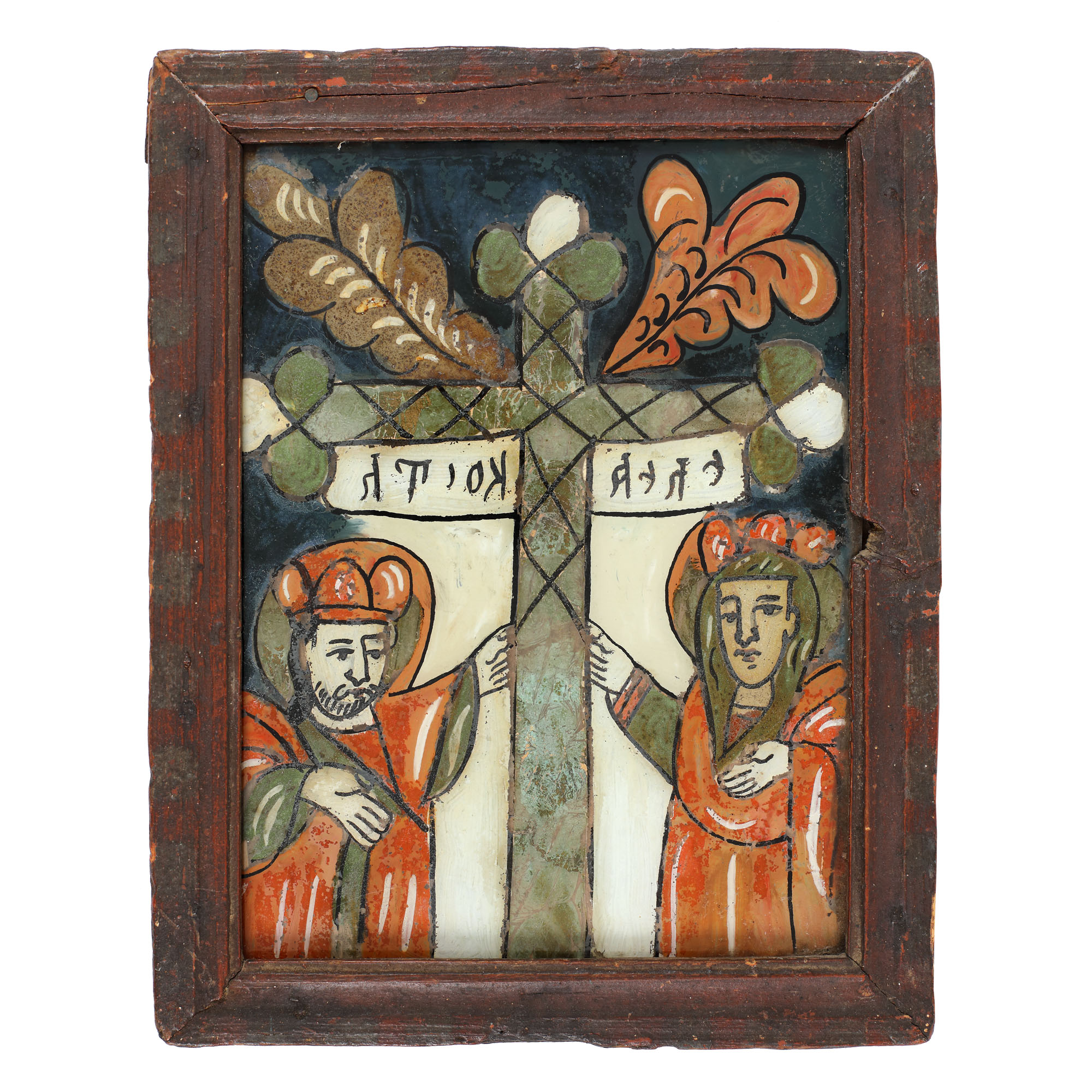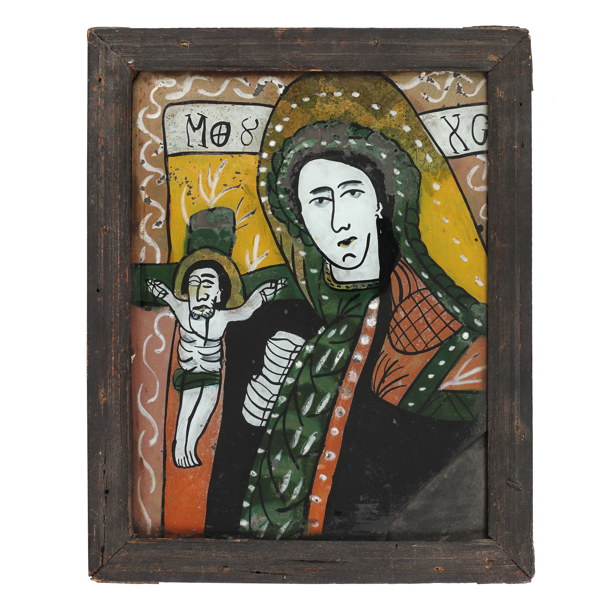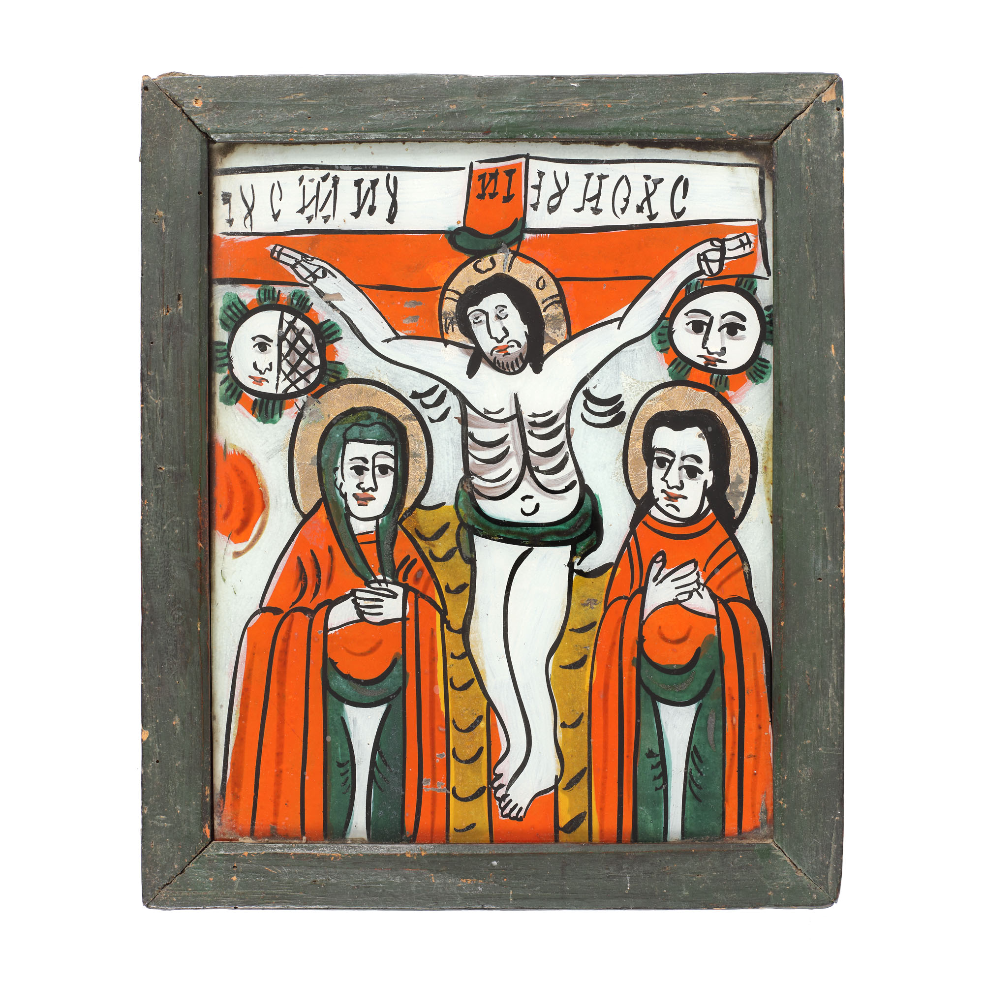 29. Icoană pe glajă, ”Răstignirea Domnului”, atelier transilvănean (Nicula), sfârșitul sec. XIX