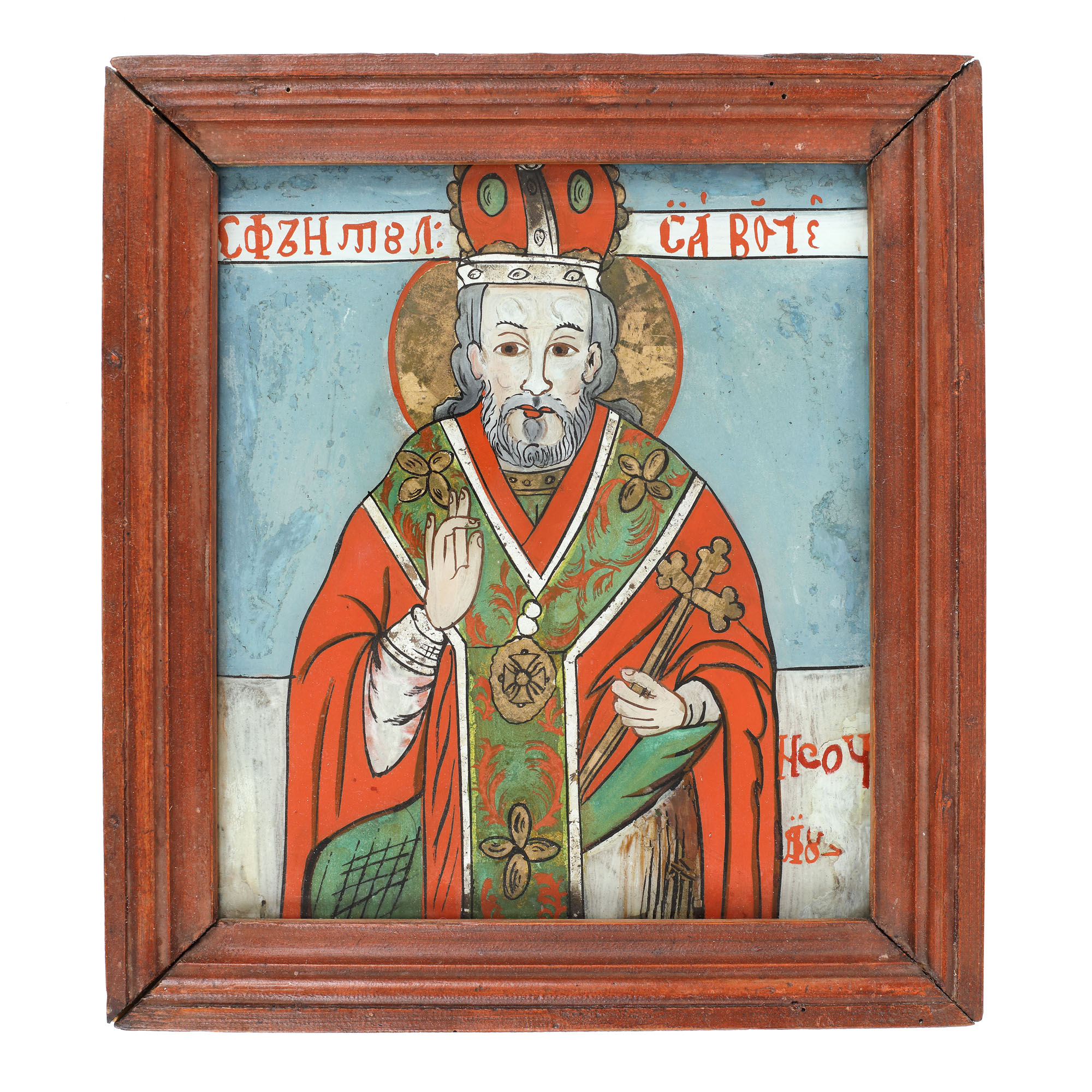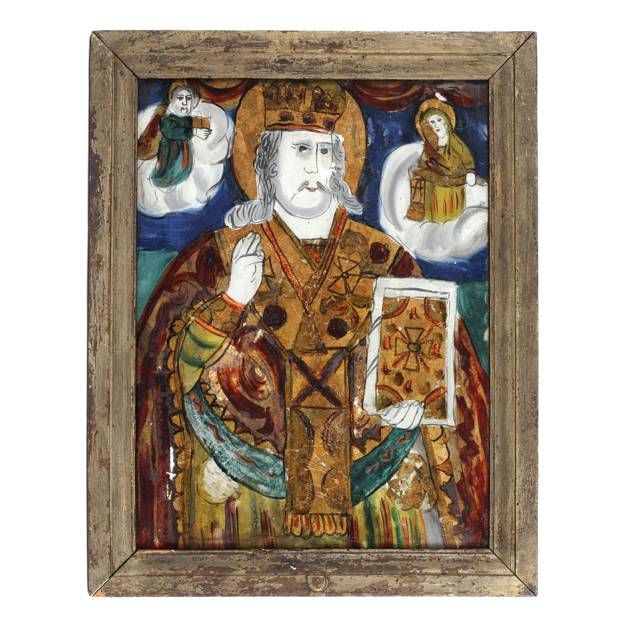 20. Icoană pe glajă, ”Sfântul Ioan”, atelier transilvănean (Mărginimea Sibiului), mijlocul sec. XIX