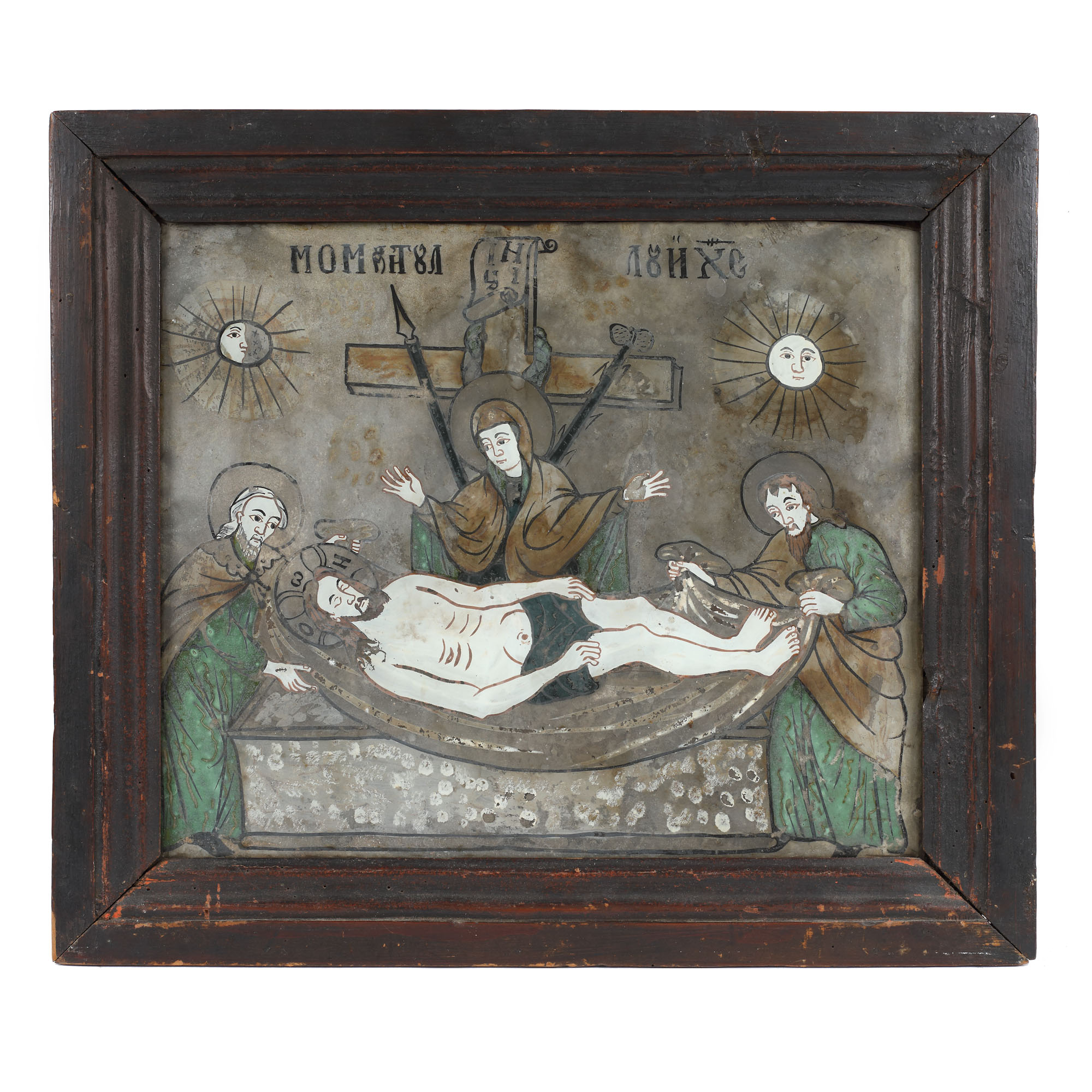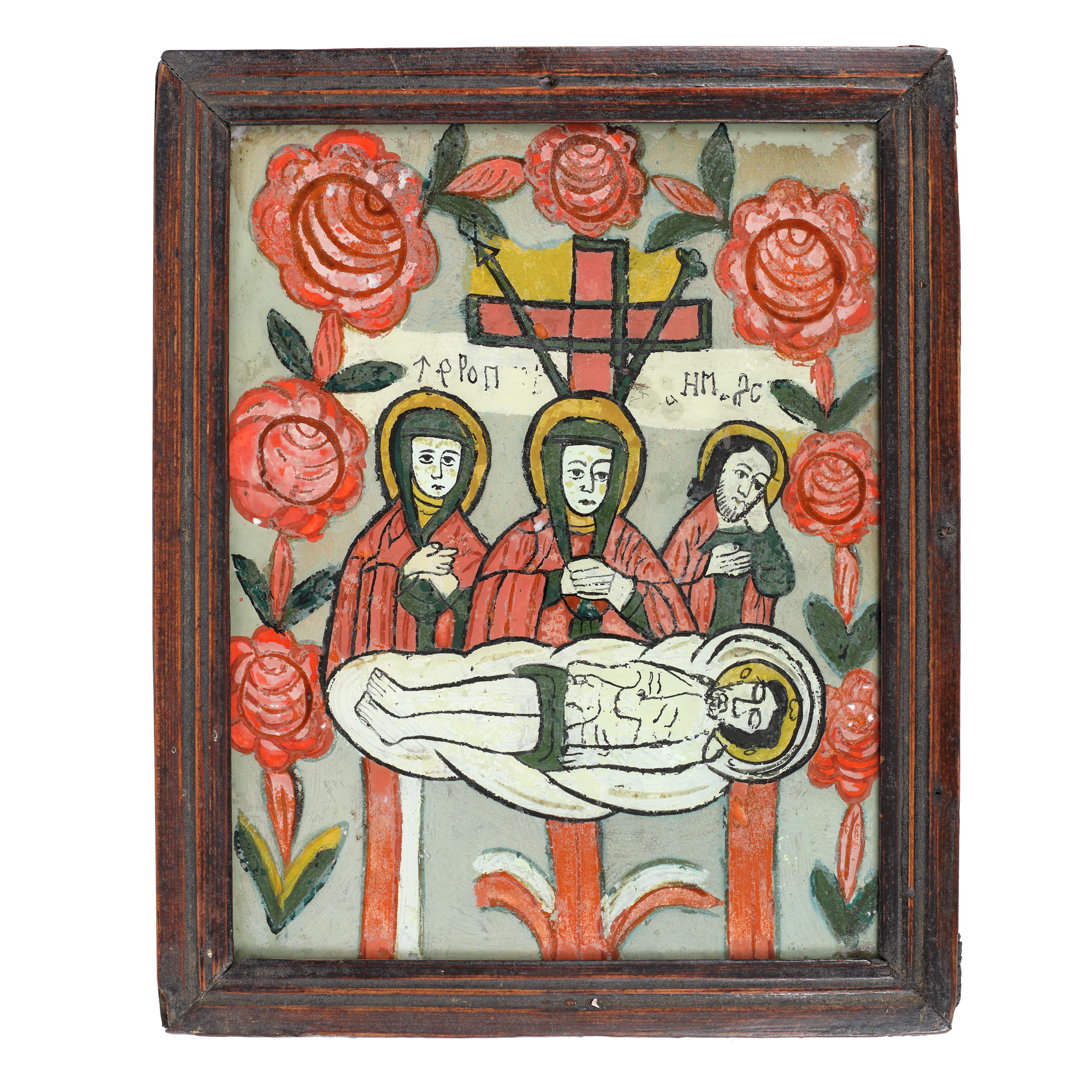 31. Icoană pe glajă, "Plângerea lui Iisus”, atelier transilvănean (Gherla), sfârșitul sec. XIX
