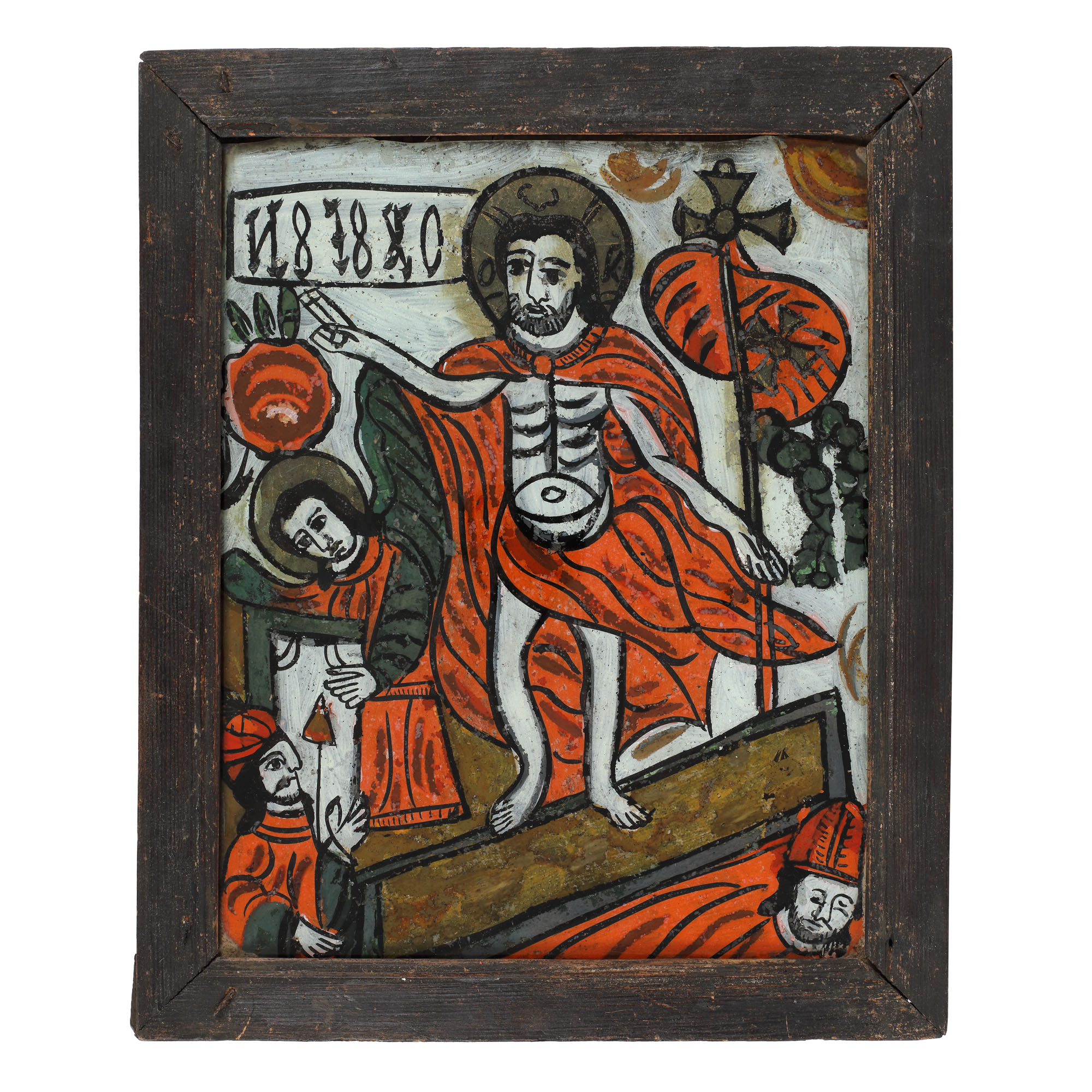 22. Icoană pe glajă, ”Învierea Domnului”, atelier transilvănean (Nicula), sfârșitul sec. XIX