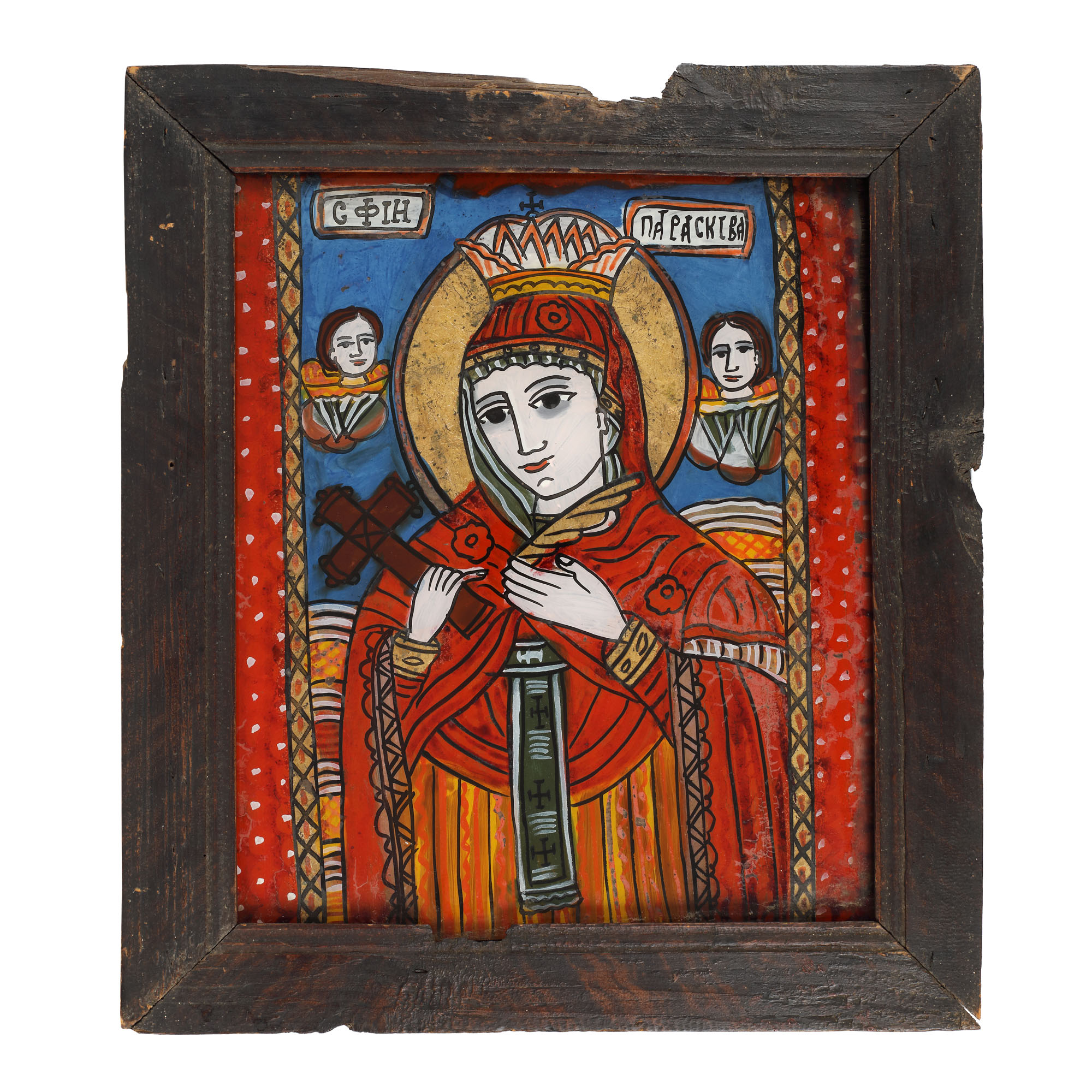 32. Icoană pe glajă, ”Sfânta Paraschiva”, atelier transilvănean (Gherla), sfârșitul sec. XIX