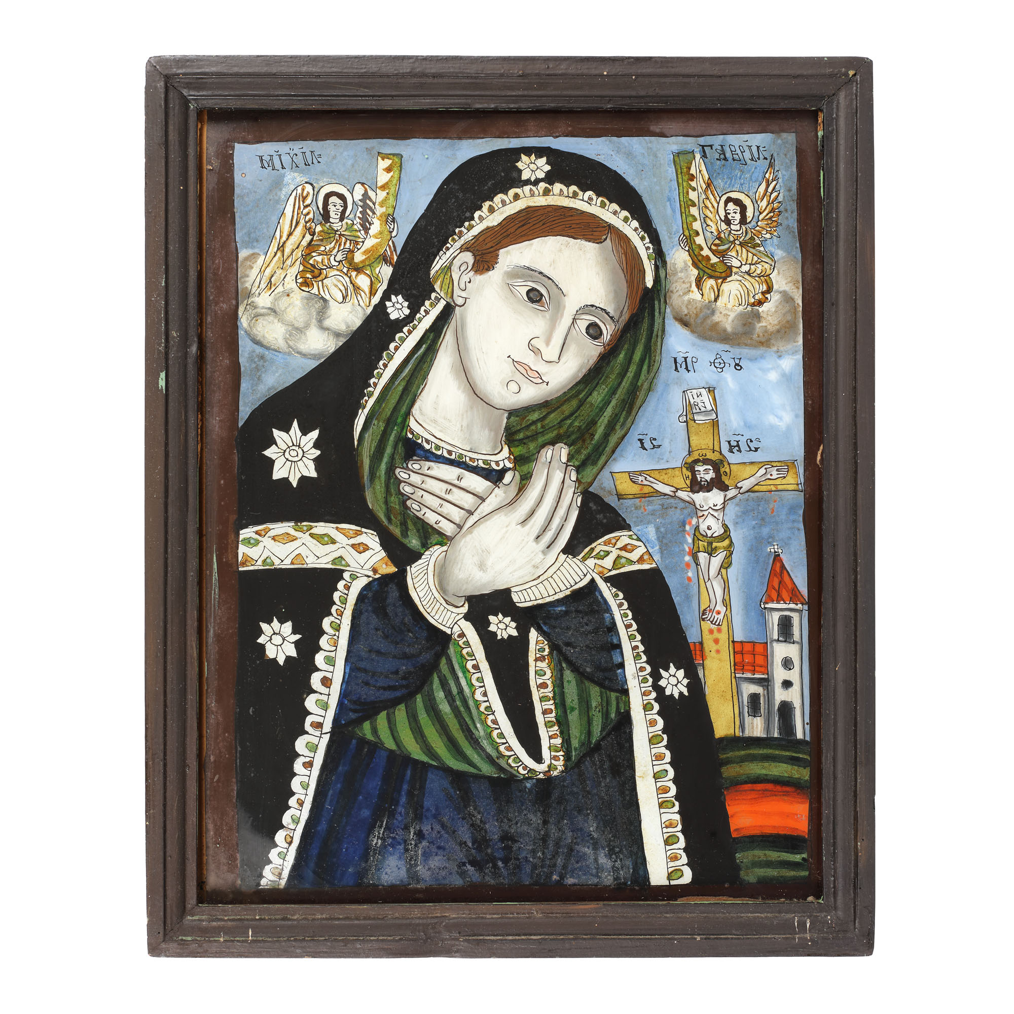 13. Icoană pe glajă, ”Maica Domnului îndurerată”, atribuit zugrav Ilie I Poienaru, Laz, cca. 1890