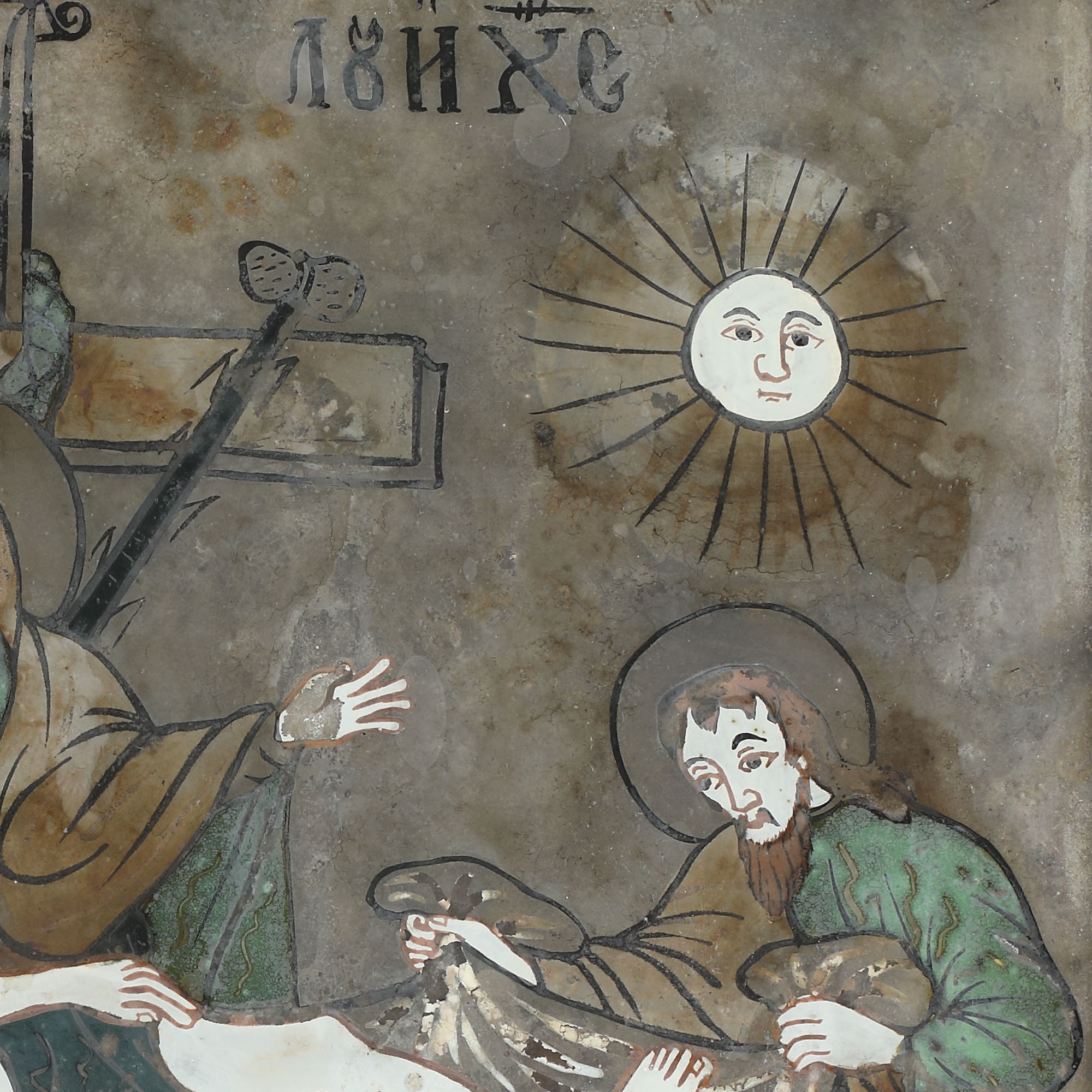 15. Icoană pe glajă, ”Plângerea lui Iisus”, atribuit zugrav Nicolae Cațavei, Făgăraș, jumătatea sec. XIX