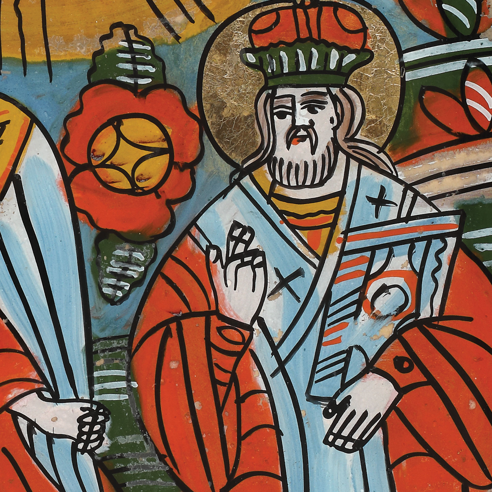 8. Icoană pe glajă, ”Sfântul Arhanghel Mihail și Sfântul Nicolae”, atelier transilvănean (Șcheii Brașovului), sfârșitul sec. XIX