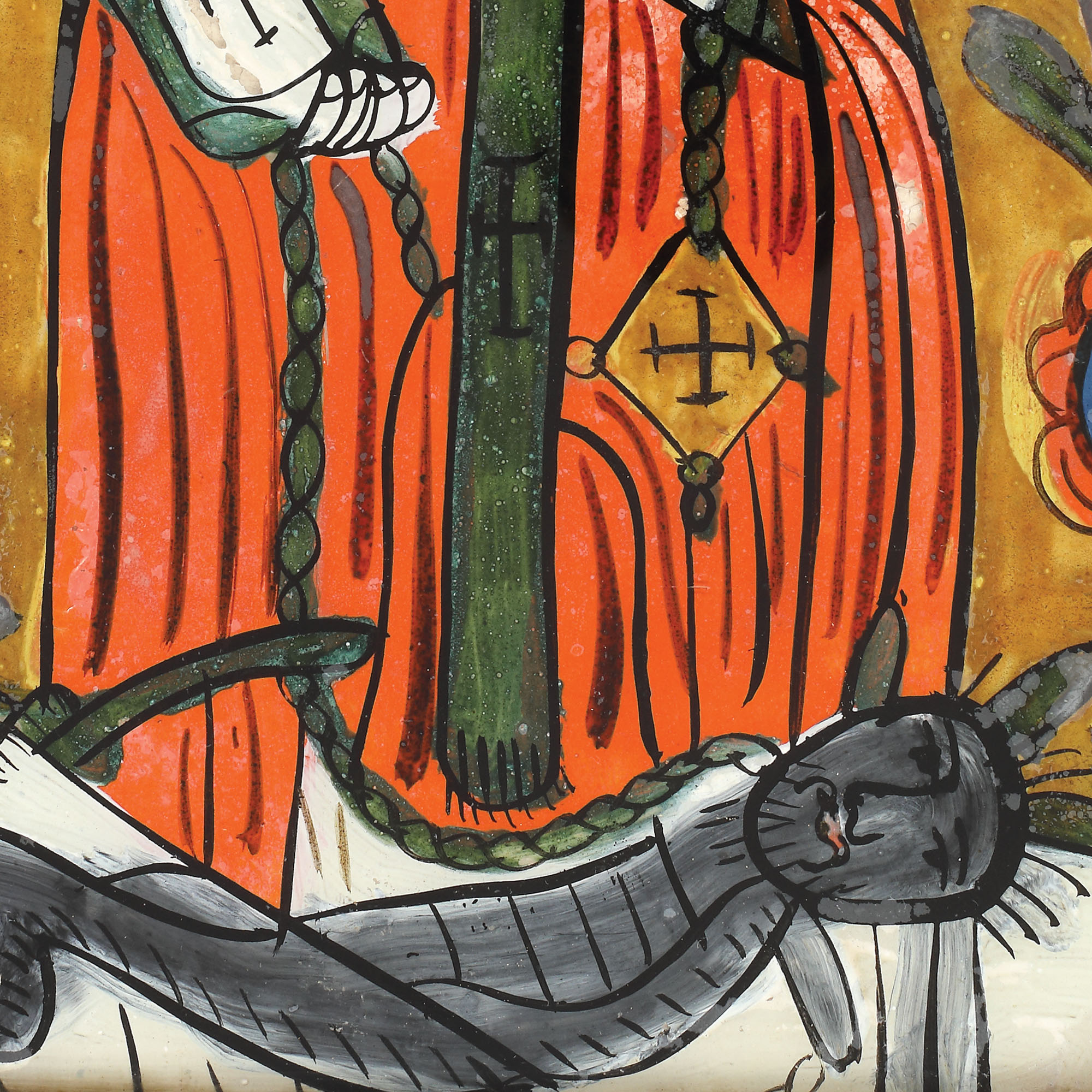 28. Icoană pe glajă, ”Sfântul Haralambie înlănțuind ciuma”, atelier transilvănean (Nicula), sfârșitul sec. XIX