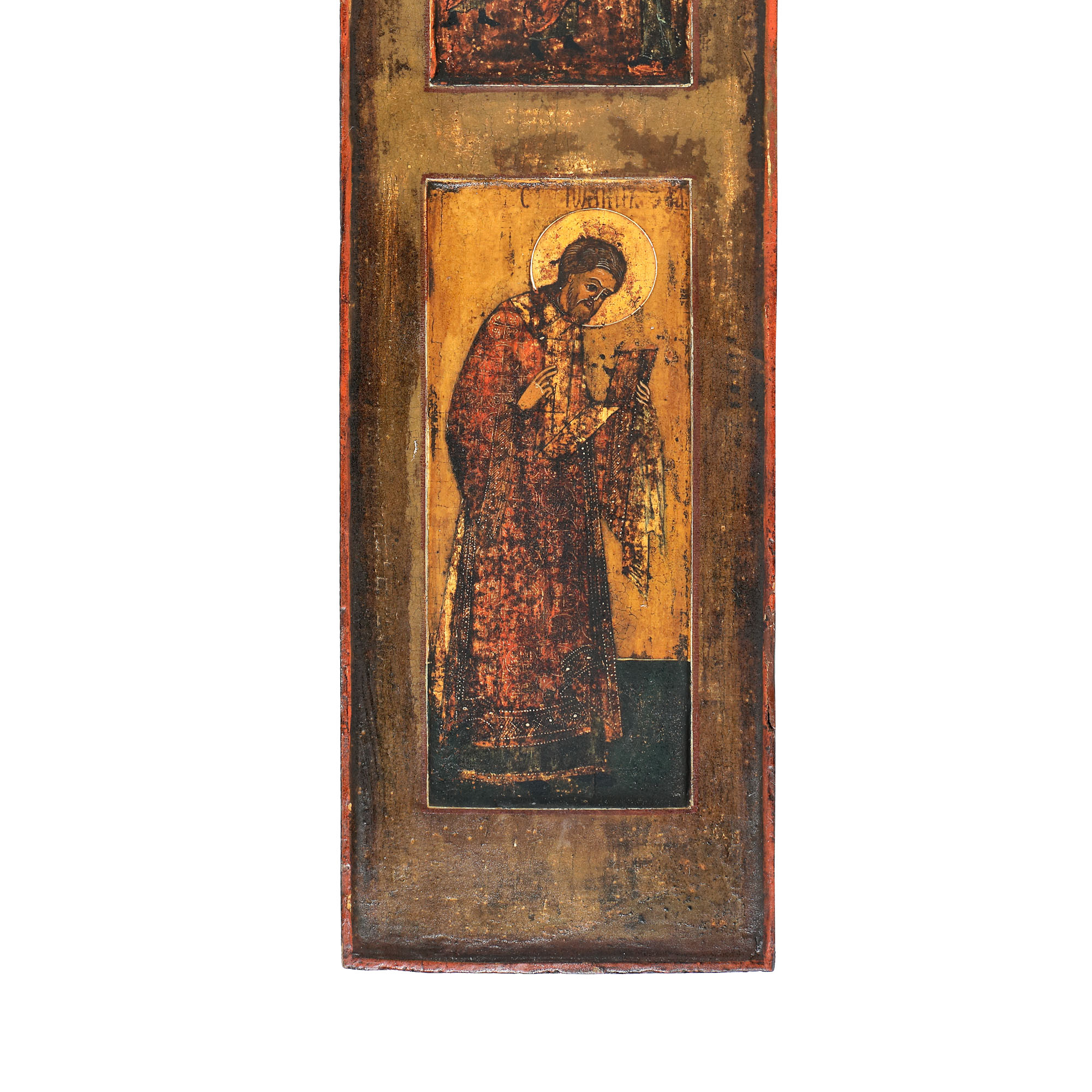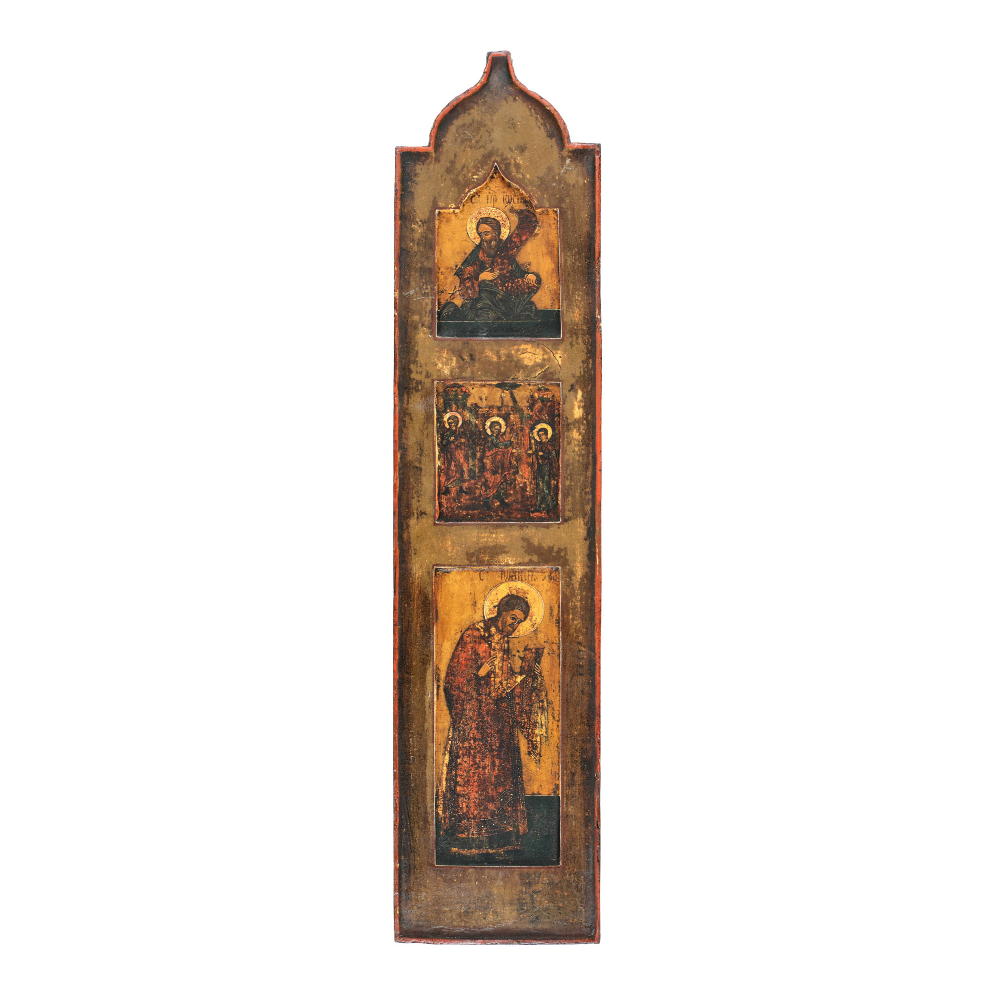 43. Icoană pe lemn, în trei registre, ”Sfântul Prooroc Iosif, Zămislirea Sfintei Fecioare Maria și Sfântul Ioachim”, școală rusească, cca. 1700, piesă rară, de colecție