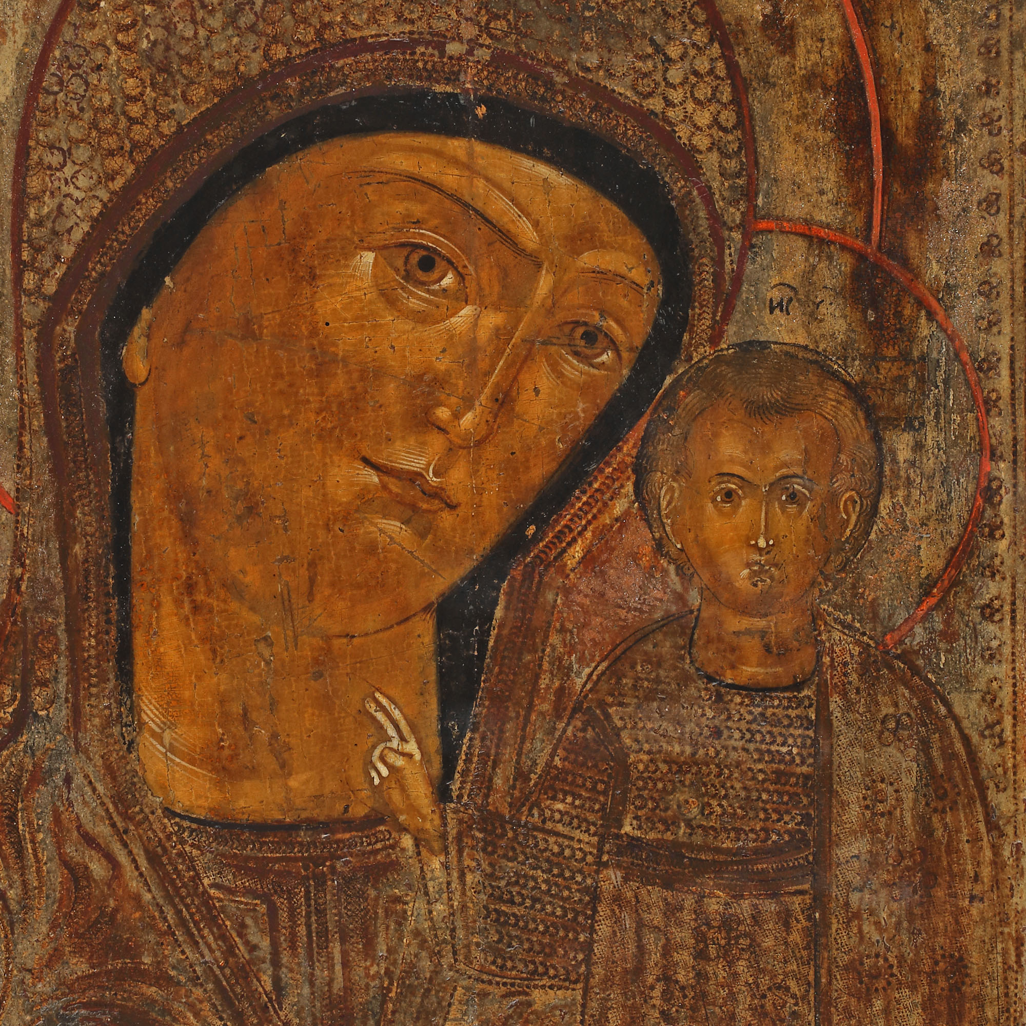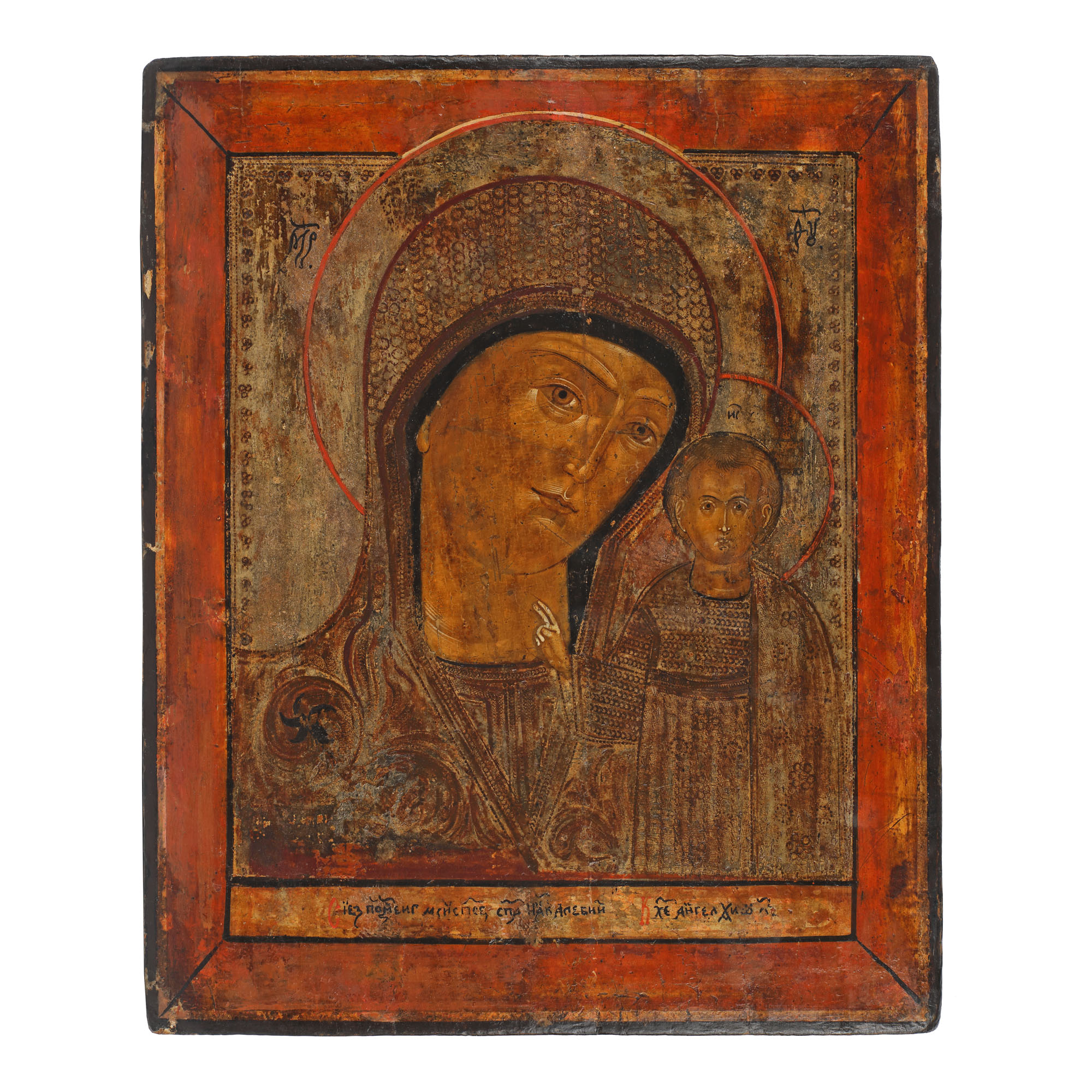 40. Icoană pe lemn, "Maica Domnului cu Pruncul (Kazanskaya)", școală lipovenească, începutul sec. XIX