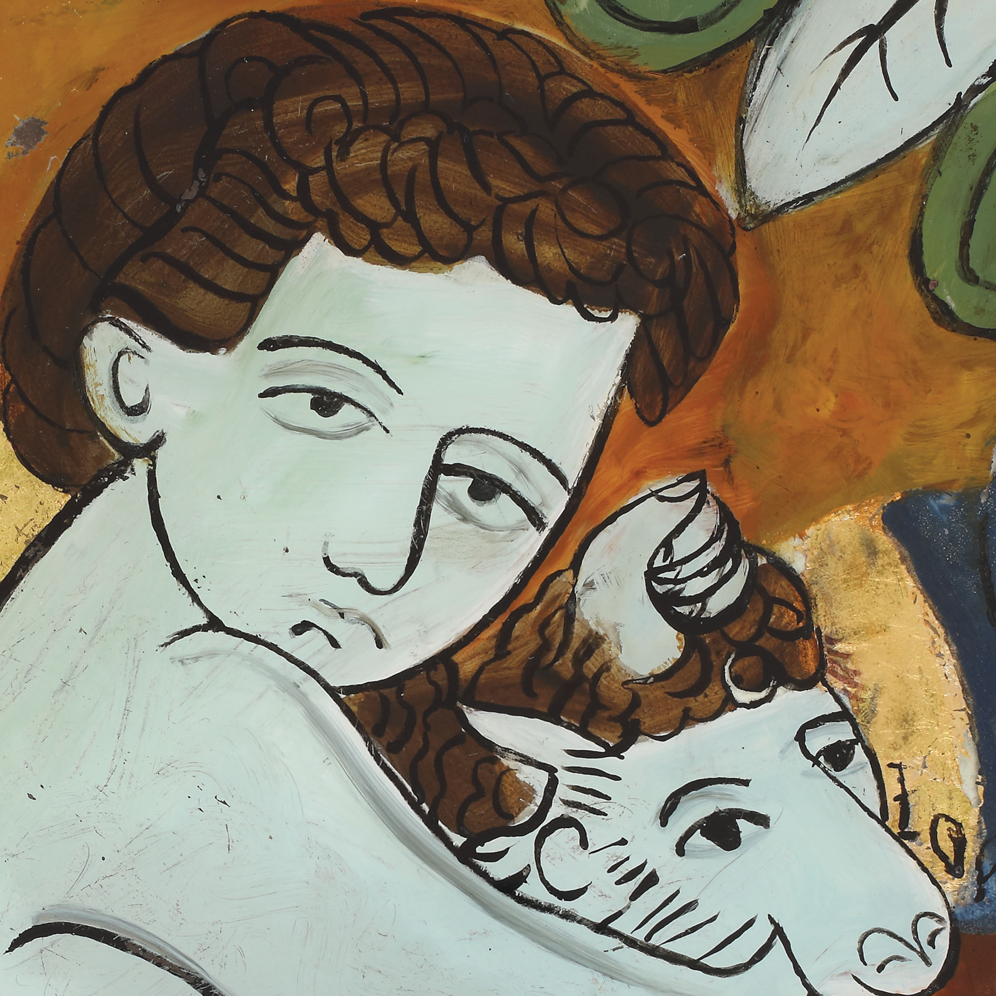 tempera și foiță de aur pe sticlă