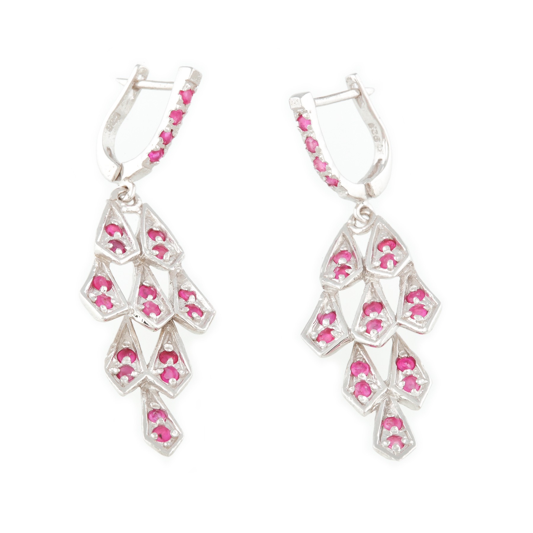 216. Pereche de cercei din argint, ornată cu safire roz