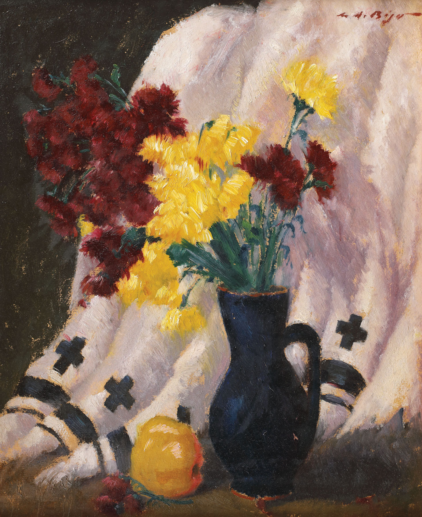 semnat dreapta sus, cu brun, "L. A. Biju"