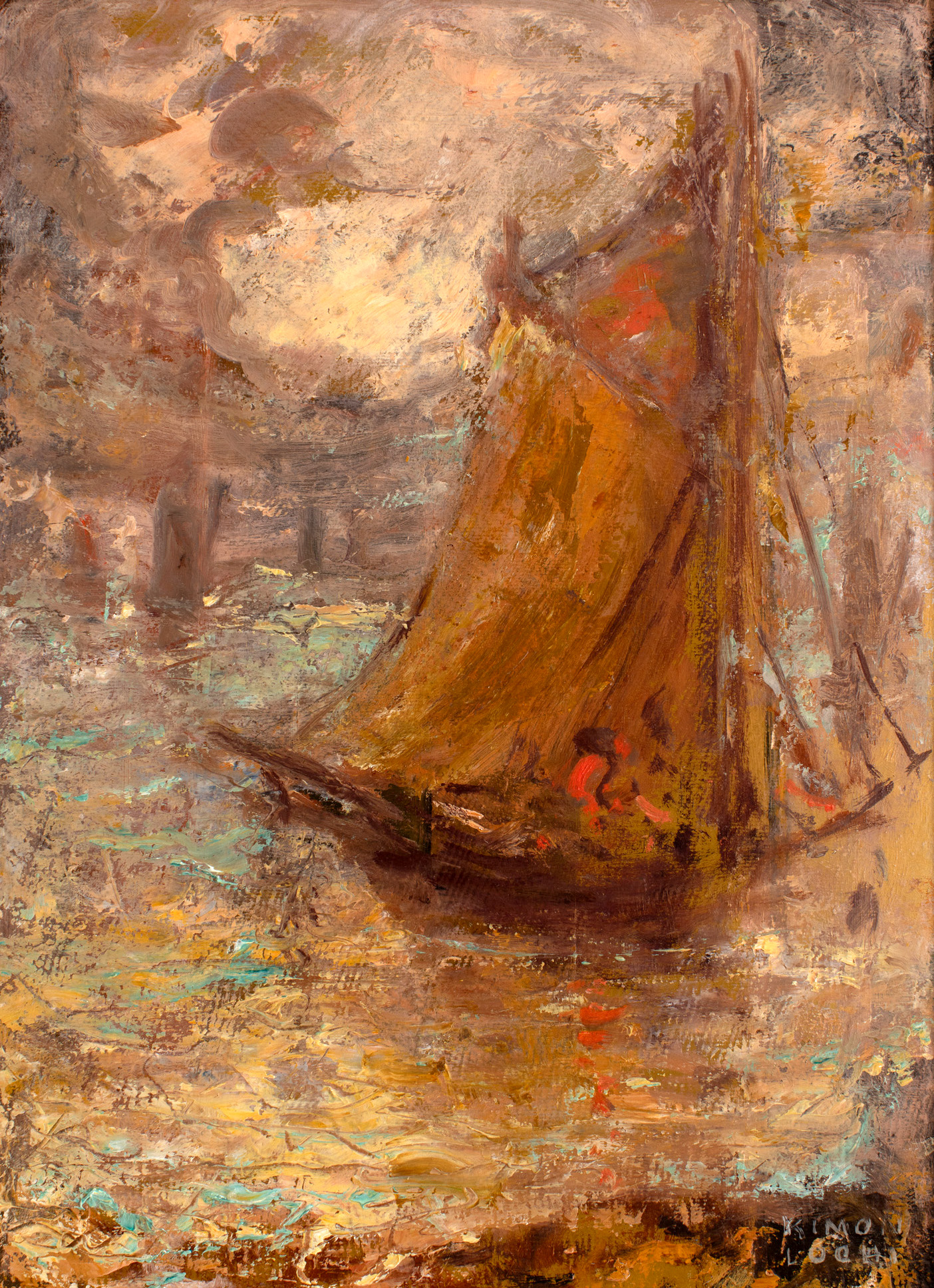 semnat dreapta jos, cu alb, ”KIMON LOGHI”