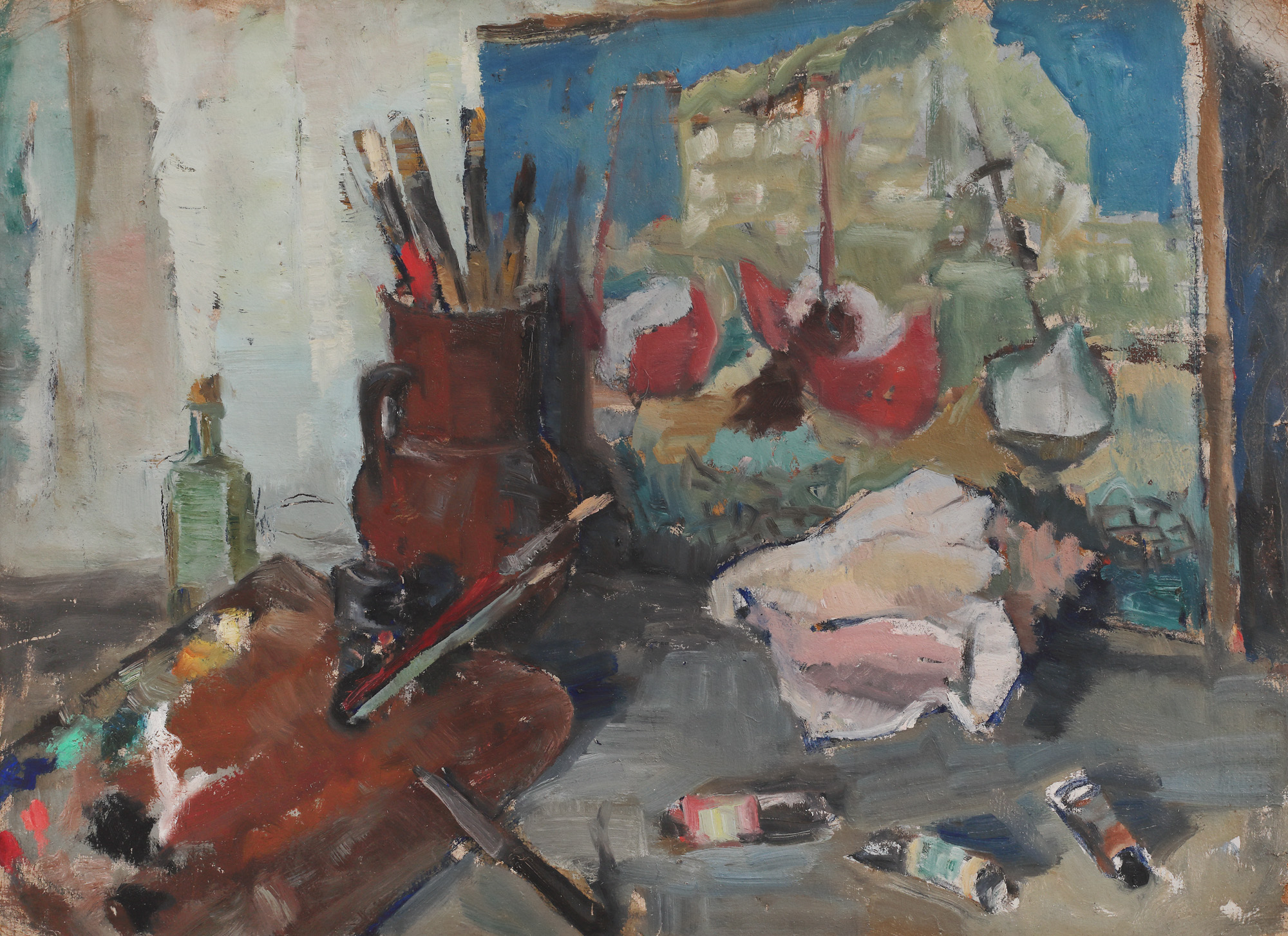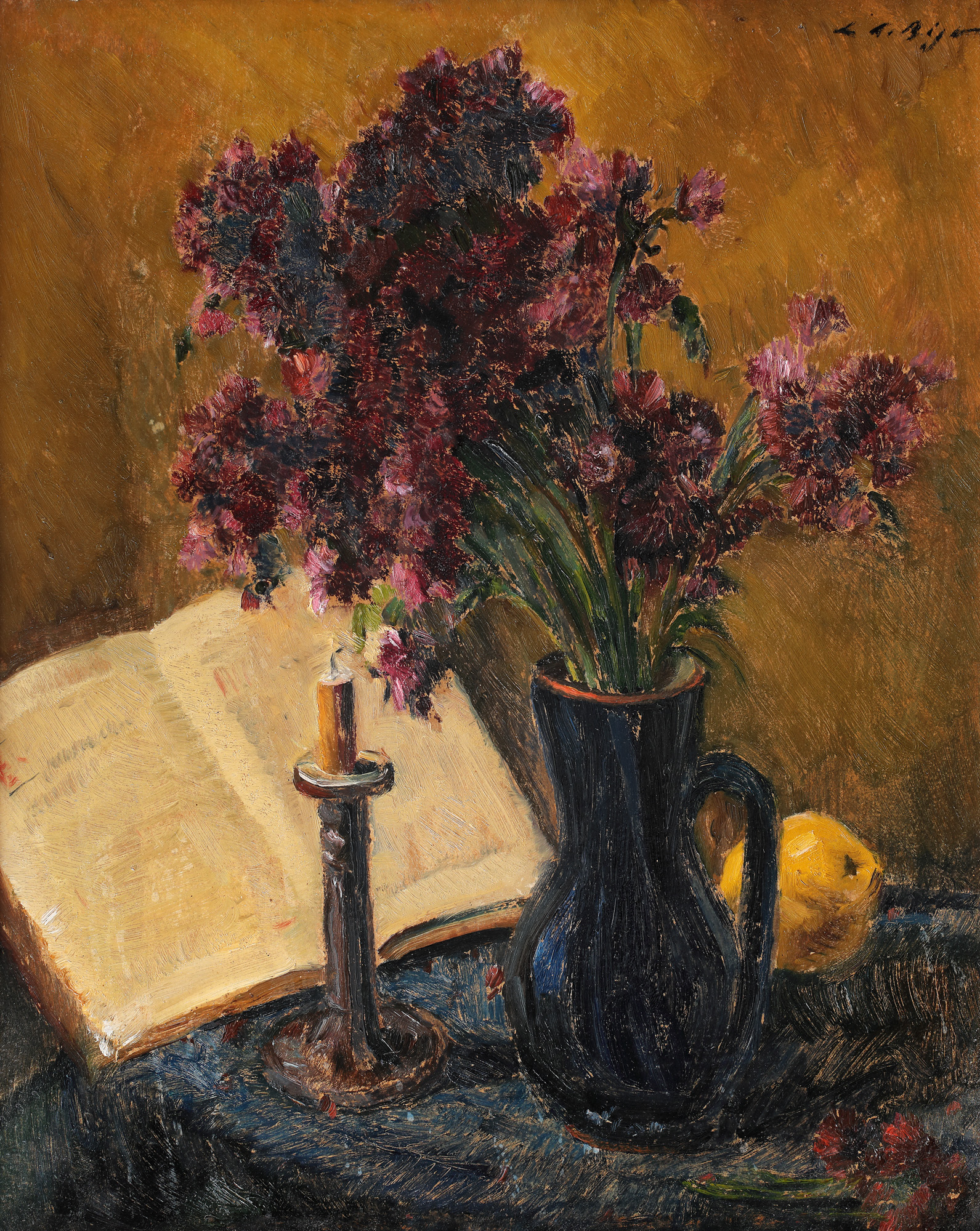 6. Natură statică cu sfeșnic și ulcior cu tufănele