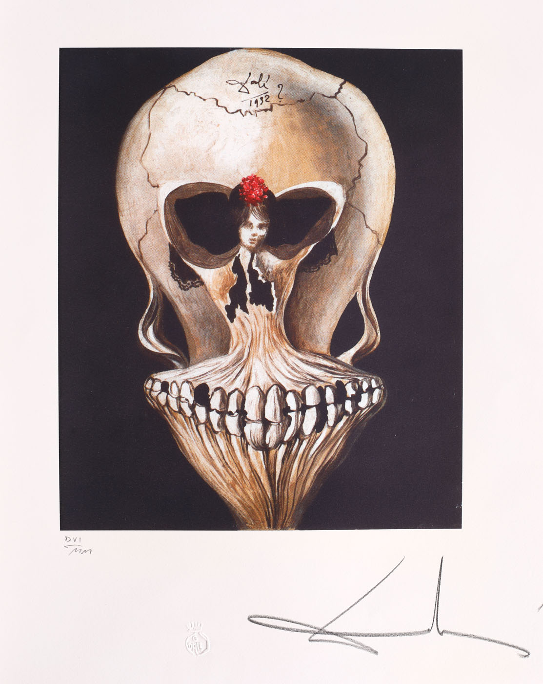 semnat și datat, gravat central sus, în placă, ”Dali, 1932”; semnat dreapta jos, sub cadru, în cărbune, "Dali"; numerotat stânga jos, sub cadru, în creion, "DVI/MM"; stânga jos, sub cadru, ştampila editurii, "G. Dali"