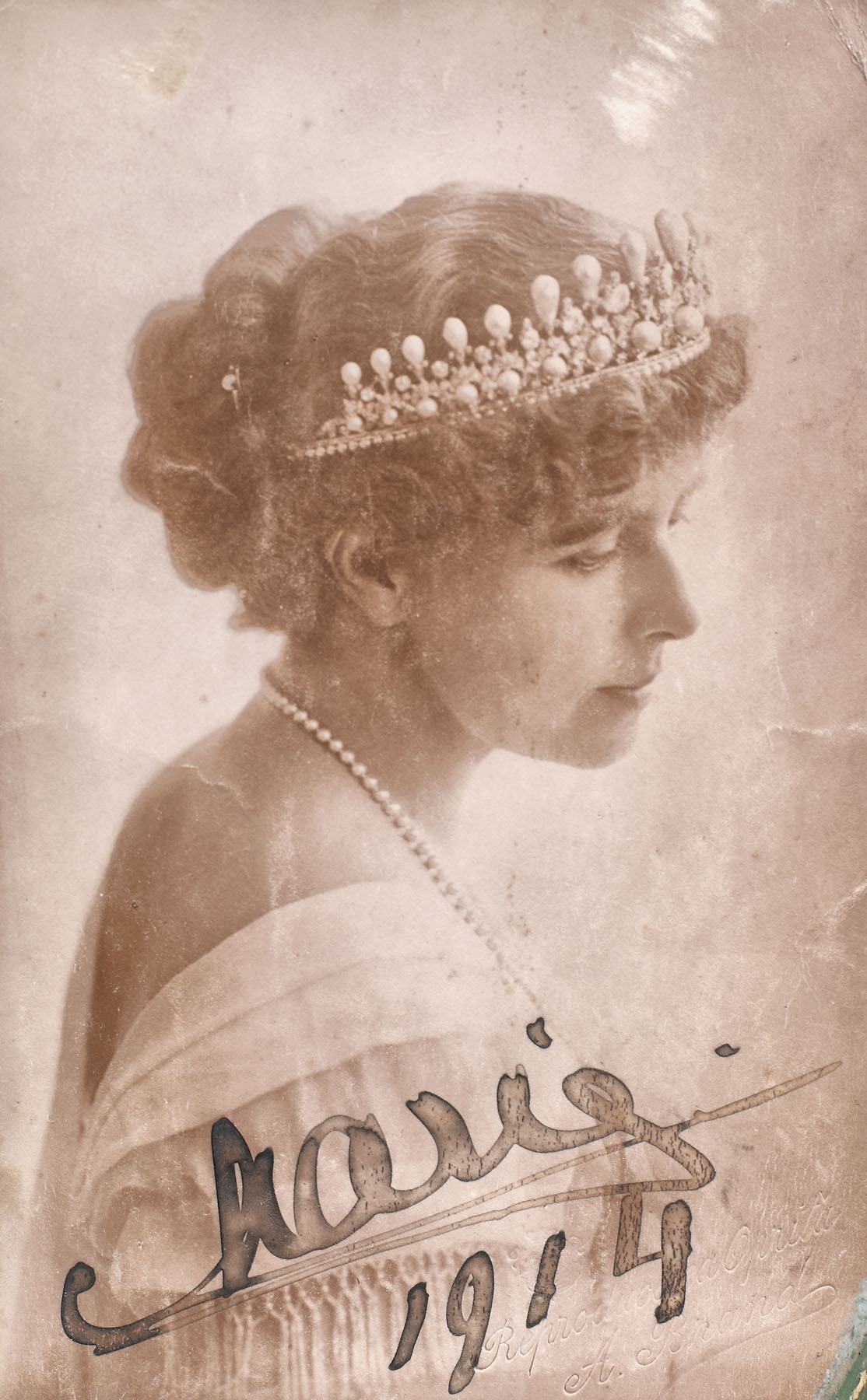 5. Fotografie ilustrând-o pe Principesa Maria, Sinaia, 1914, cu semnătura olografă a principesei, în ramă decorată cu motive Neo-brâncovenești