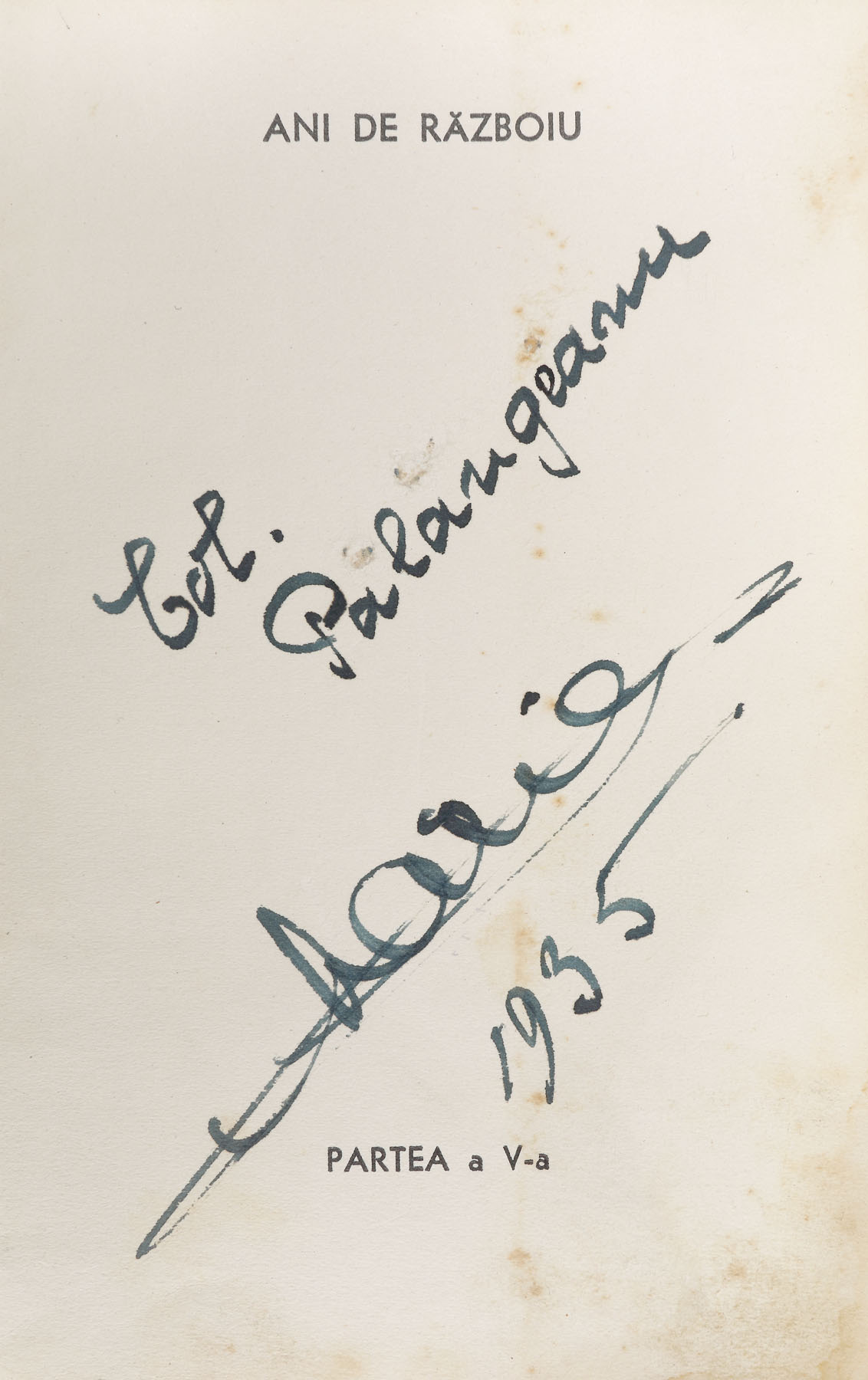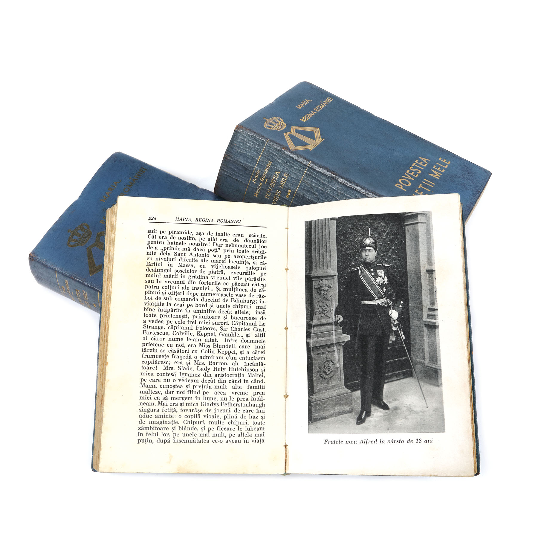 13. ”Povestea vieții mele”, de Regina Maria, prima ediție, de lux, trei volume, București, 1935, cu semnătura olografă și dedicația reginei către colonelul Emil Pălăngeanu