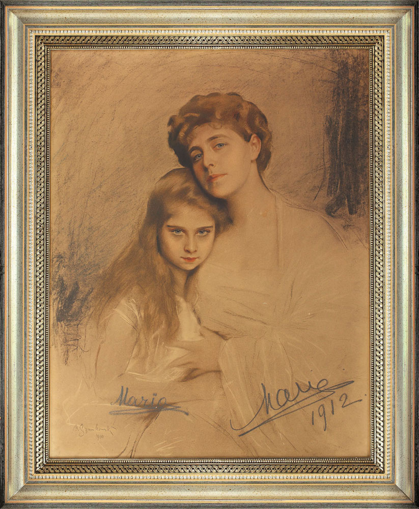 6. Regina Maria şi Principesa Mărioara, litografie colorată, cu autografe