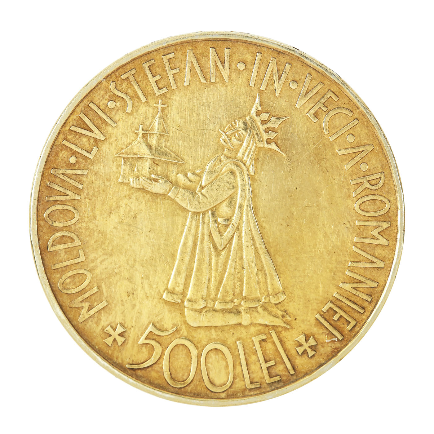 31. Monedă de 500 lei, Mihai I, din argint aurit, gravor Ioana Bassarab, 1941