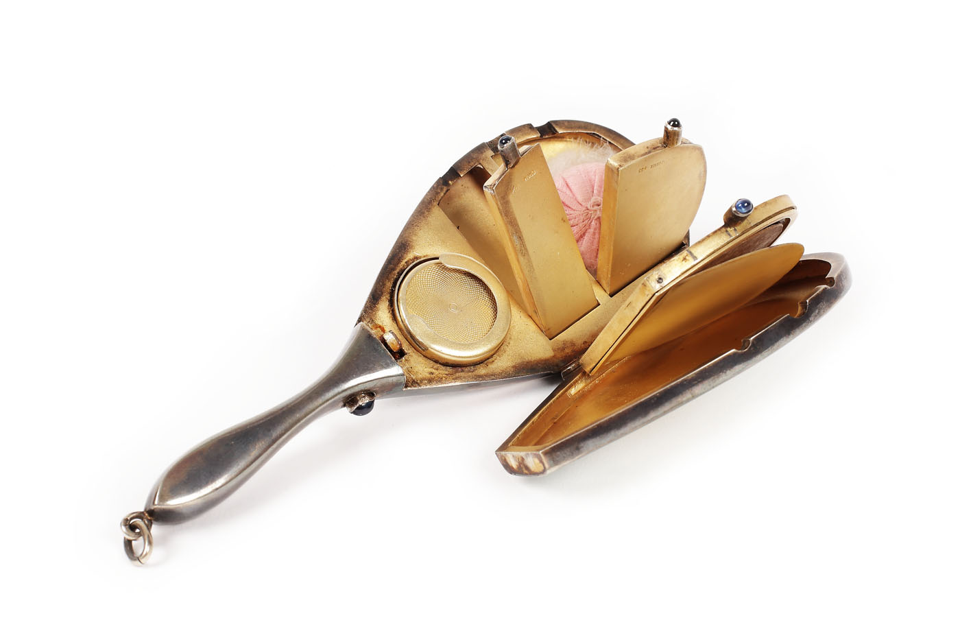 Pudriera este un accesoriu nelipsit din gentuța de bal a oricărei doamne. Această excepțională piesă de colecție ce a aparținut doamnei de onoare a Reginei Maria, Irina Procopiu, este realizată la comanda Reginei. În formă de oglinjoară de mână, păstrează înăuntru un loc pentru pudră, unul pentru ruj și chiar un loc pentru depozitat monede.