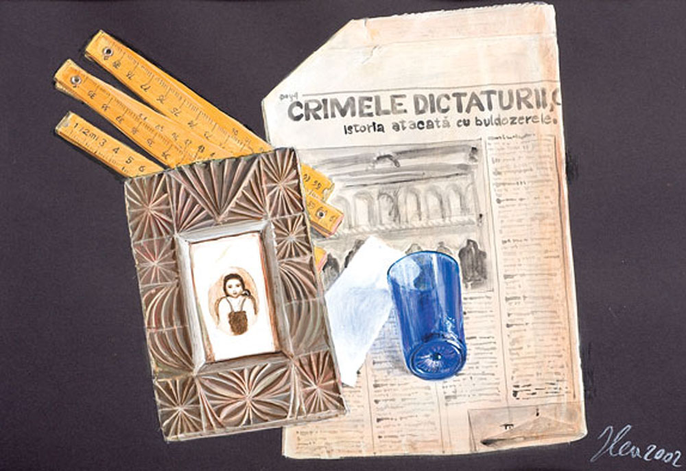 20. Natură statică cu metru de tâmplărie și ziar actual